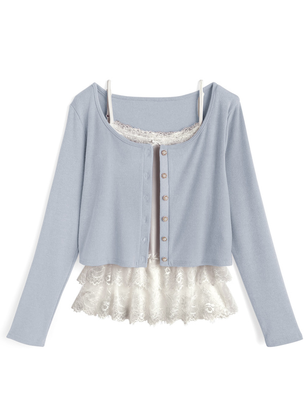 ☆素材は【(カーディガン)ポリエステル75% レーヨン20% ポリウレタン5% (インナー)本体:コットン90% ポリウレタン10% レース部分:ナイロン88% ポリウレタン12%】