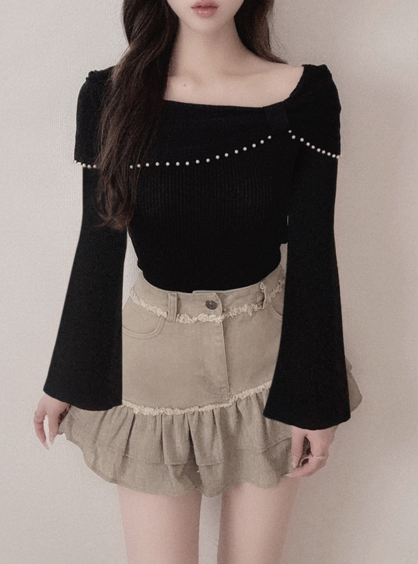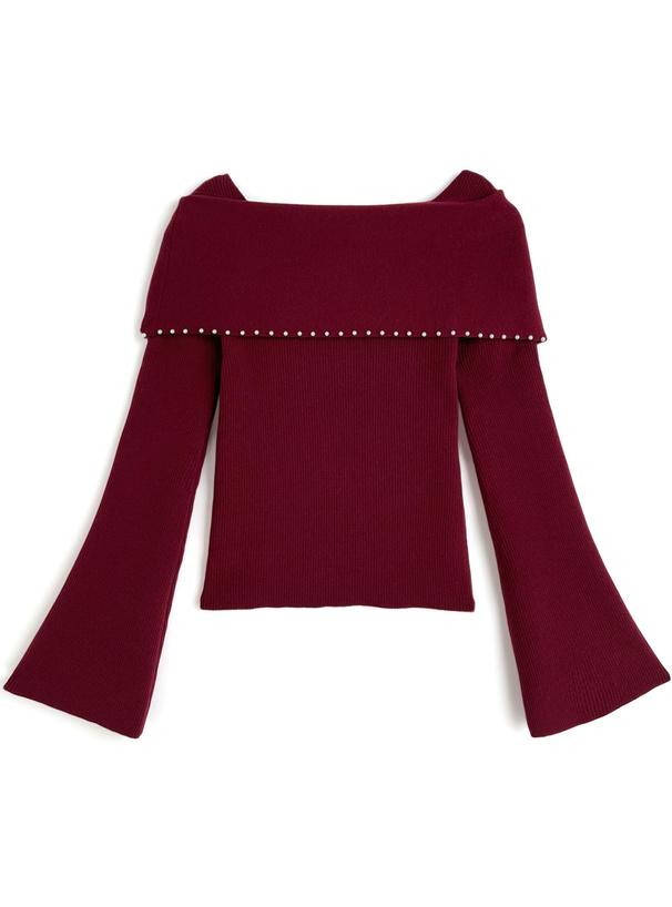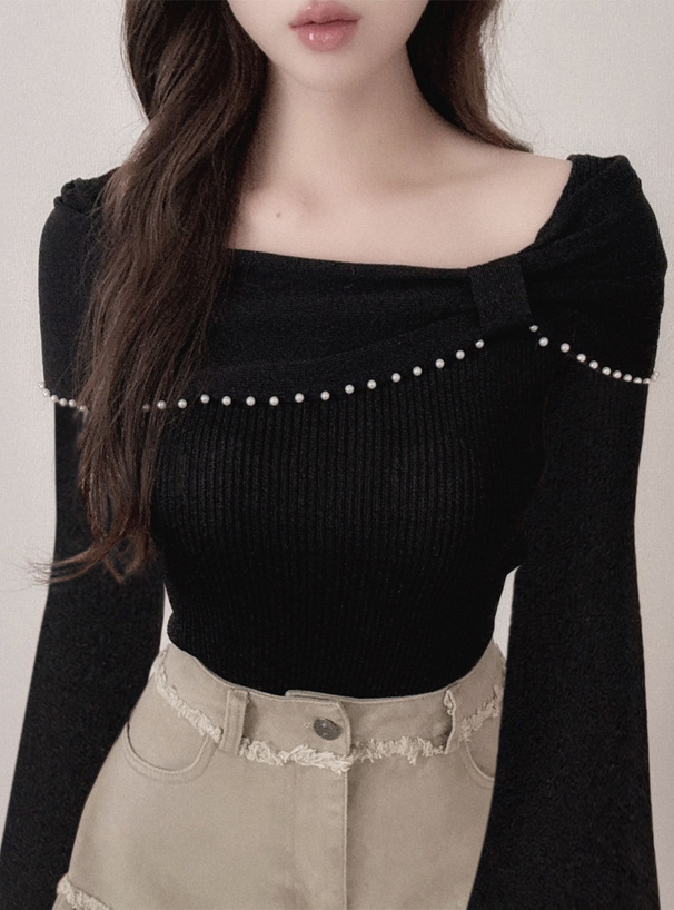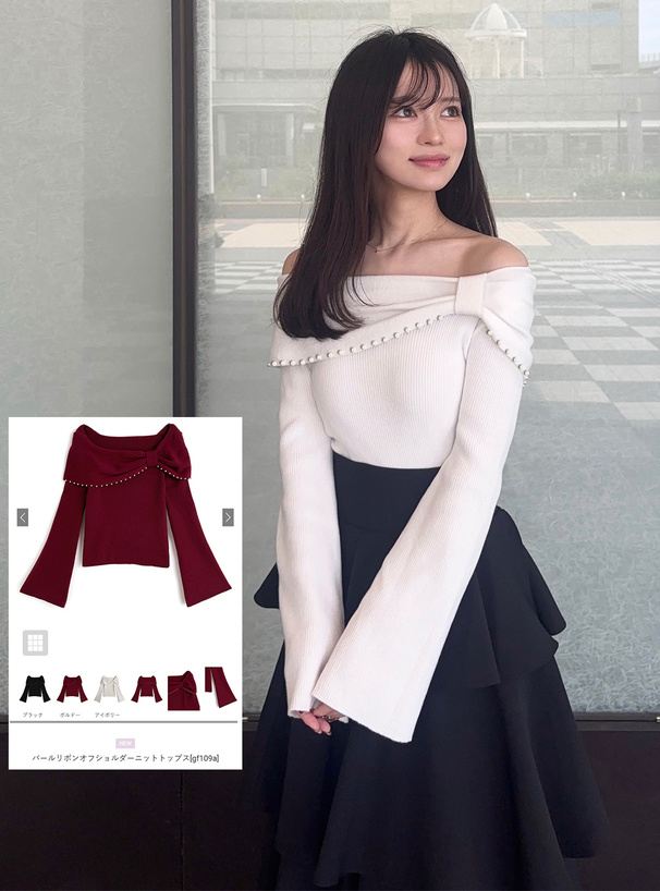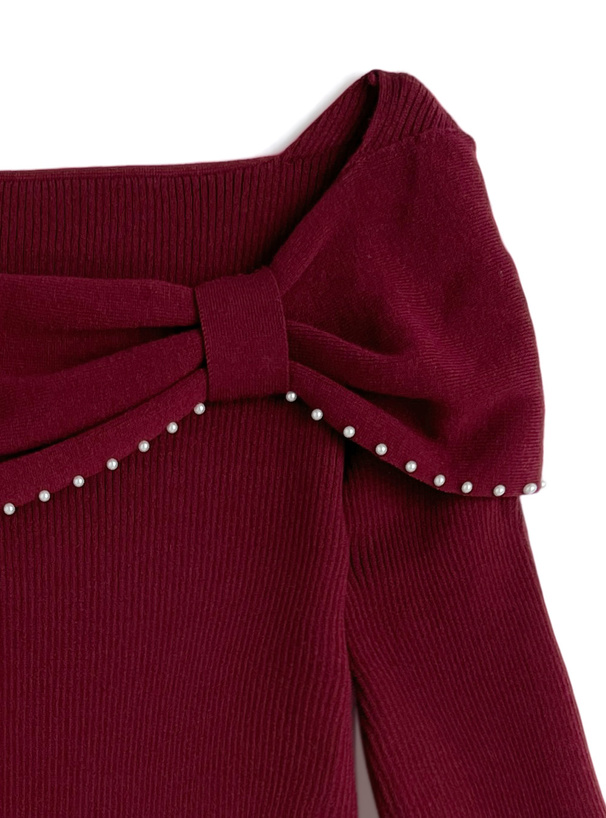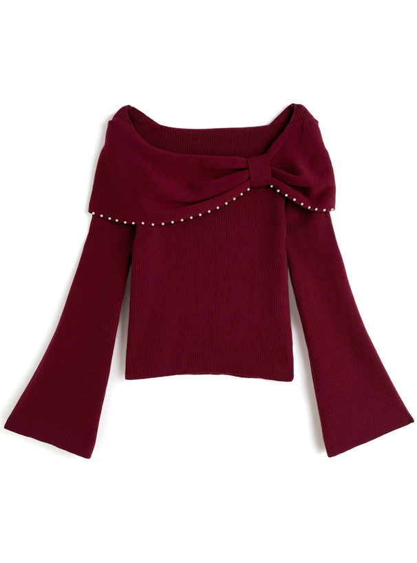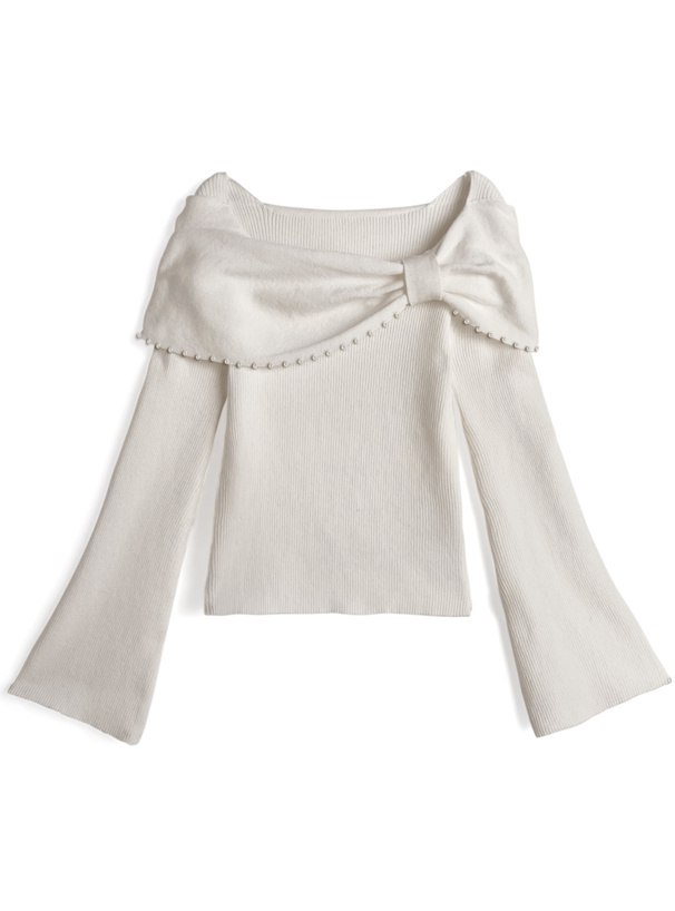 【新品未使用】パールリボンオフショルダーニットトップス[gf109a]