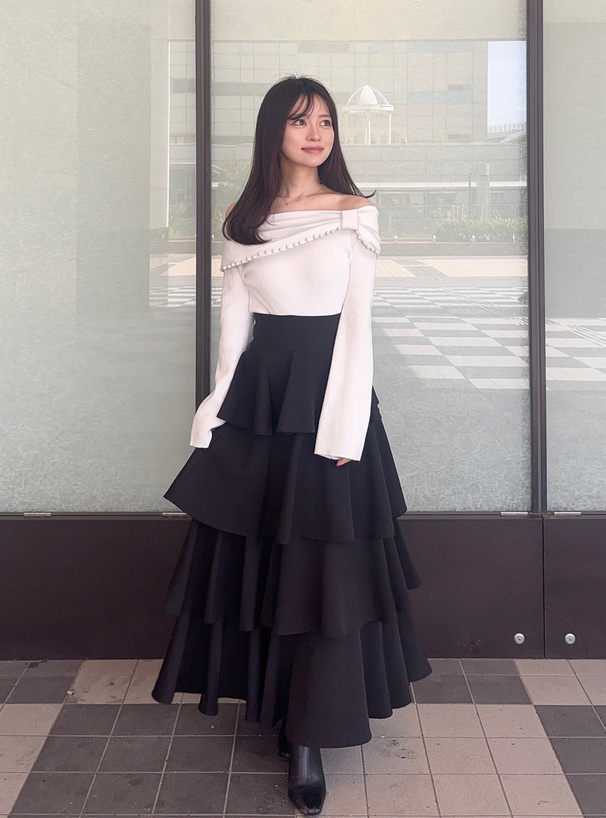 配色リボンオフショルダーマーメイドロングワンピース[sf1199]