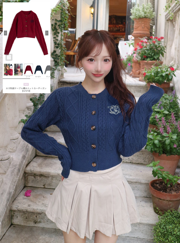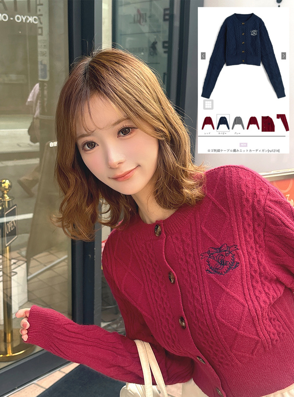 胸元にはリボンやロゴが入ったエンブレム刺繍をあしらい、ガーリーな印象をプラス。