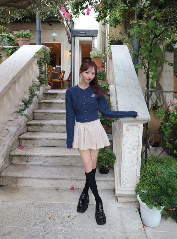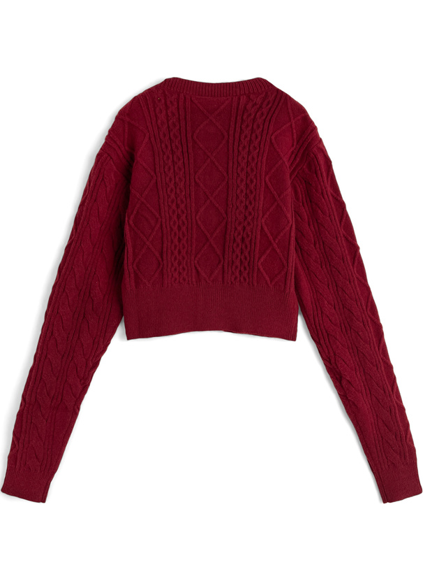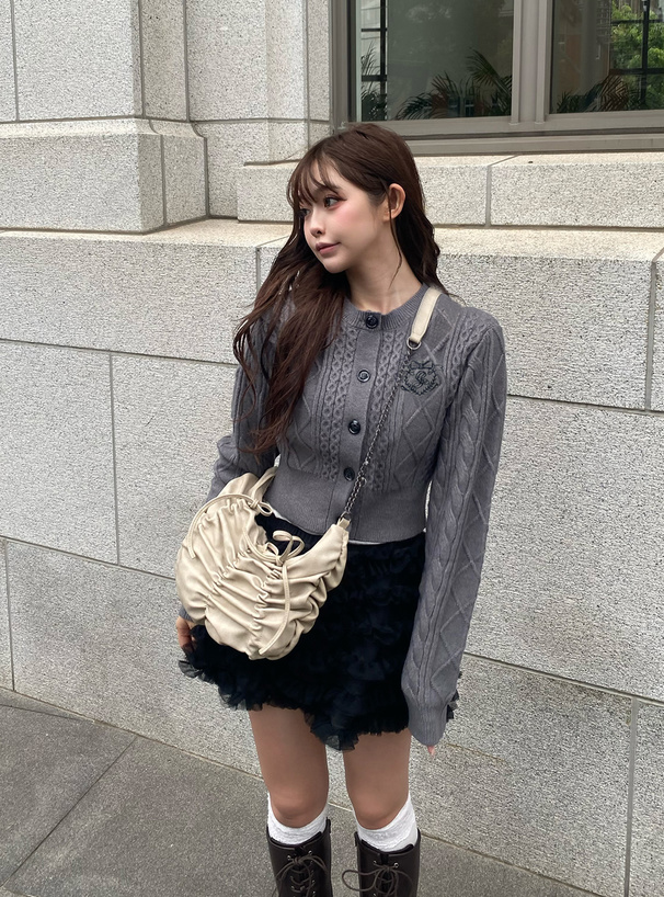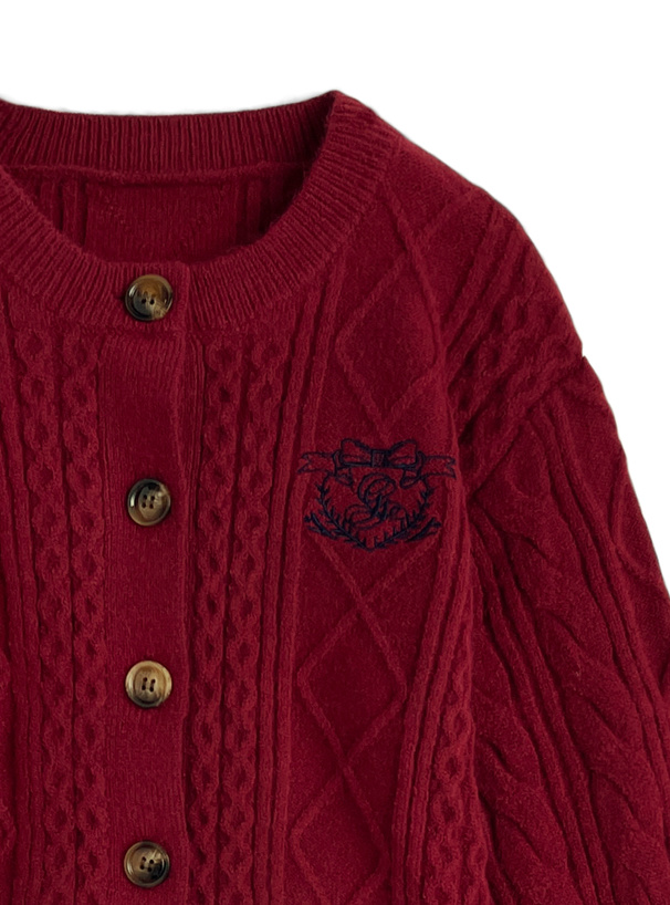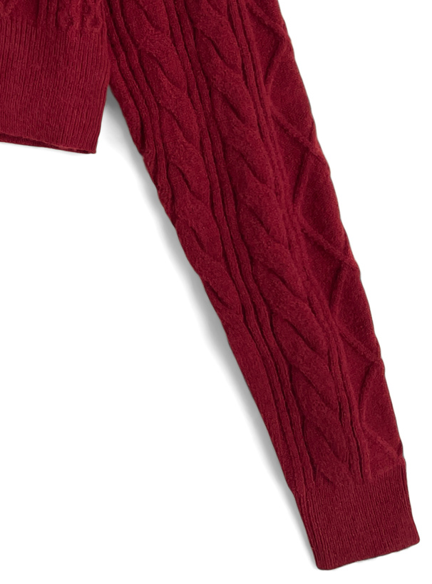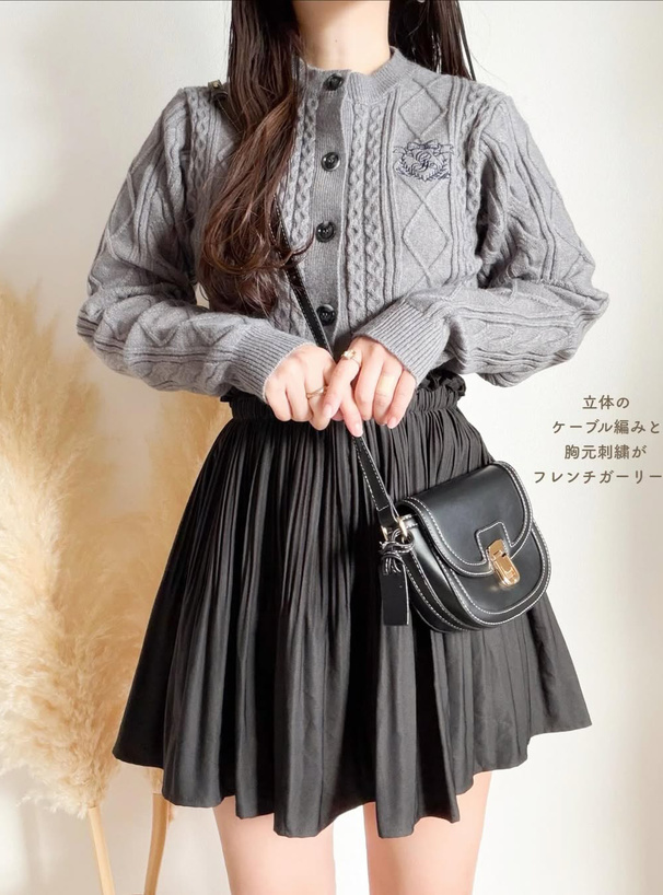 立体感のあるケーブル編みが魅力的なニットカーディガン。
