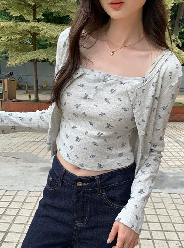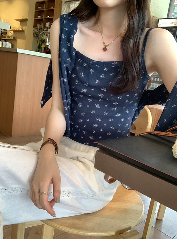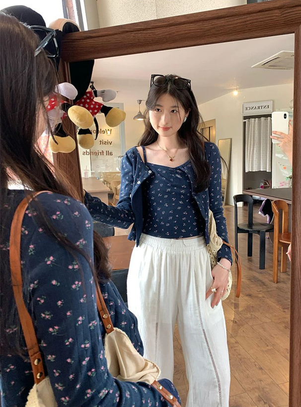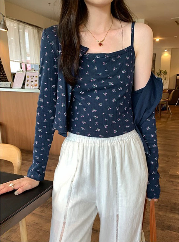 小花柄キャミソール×リボンカーディガンアンサンブル[ac2568]