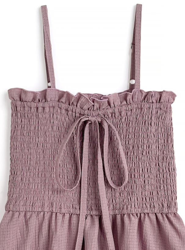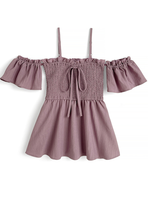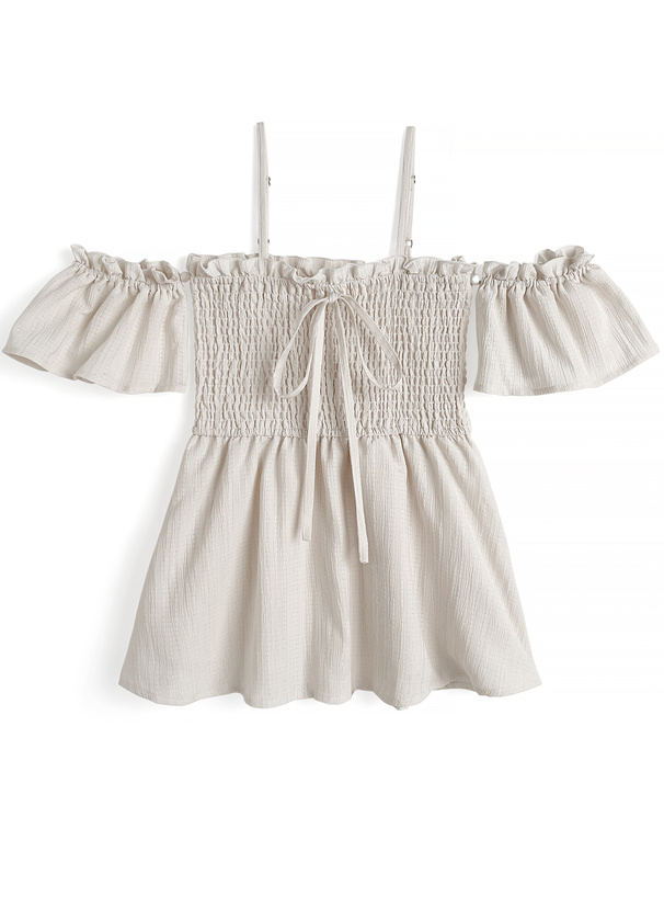 シャーリングでボディに沿わせた身頃が、メリハリのあるラインを演出。
