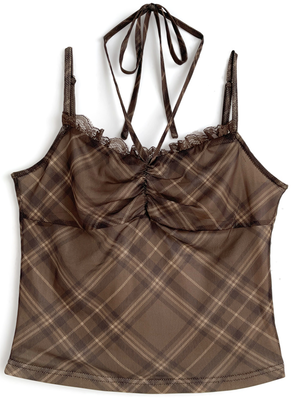 レースディテールが甘さを添えるキャミは、胸元にリボンをあしらい、そのまま結んでもホルターネックにもできる2Way仕様。