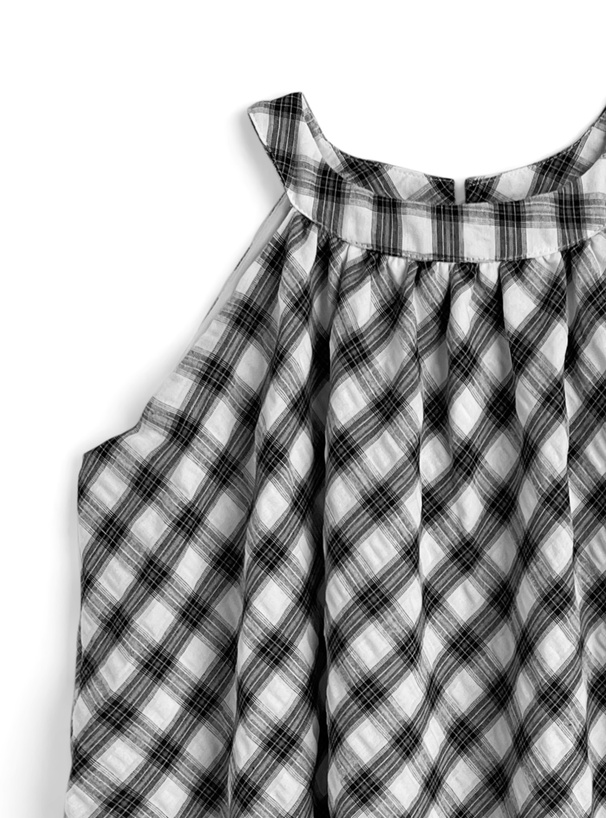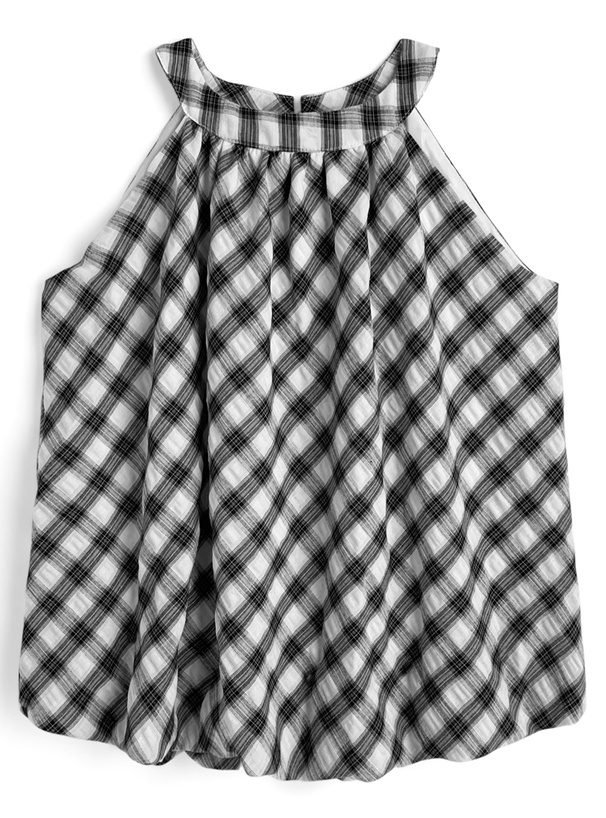 チェック柄ホルターネックバルーントップス[sd127] オフホワイト