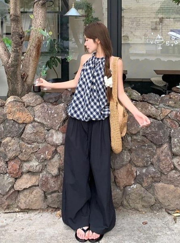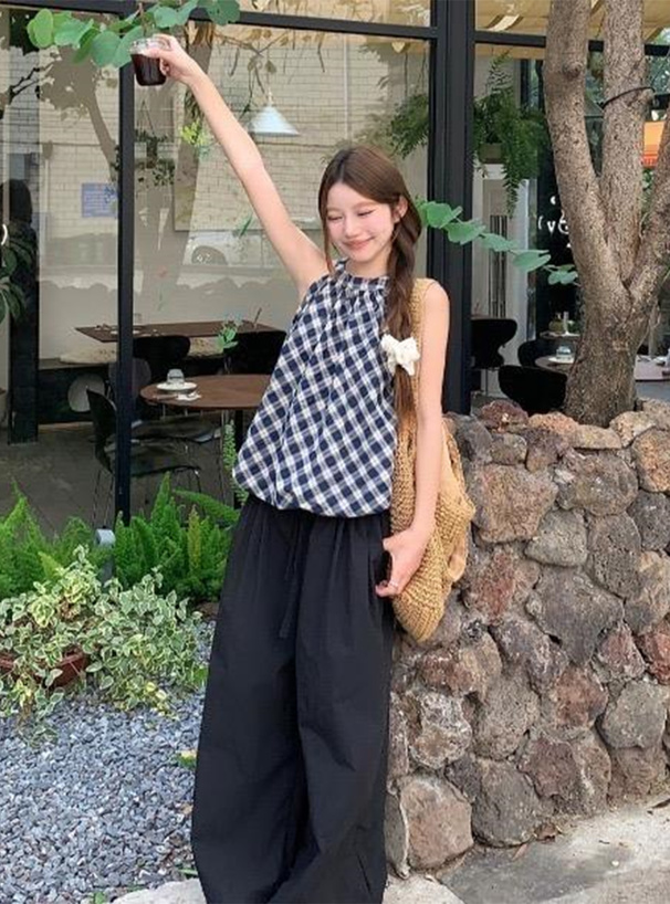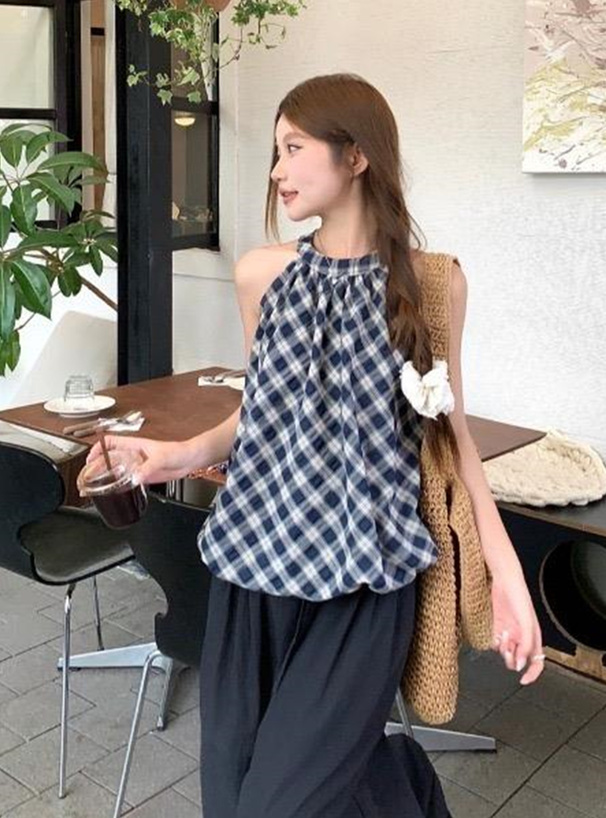 GRL チェック柄ホルターネックバルーントップス[sd127]