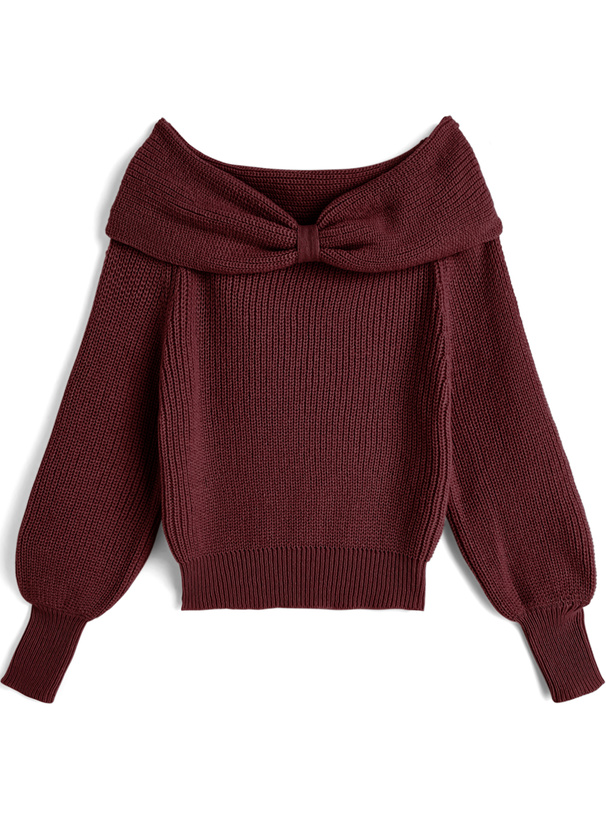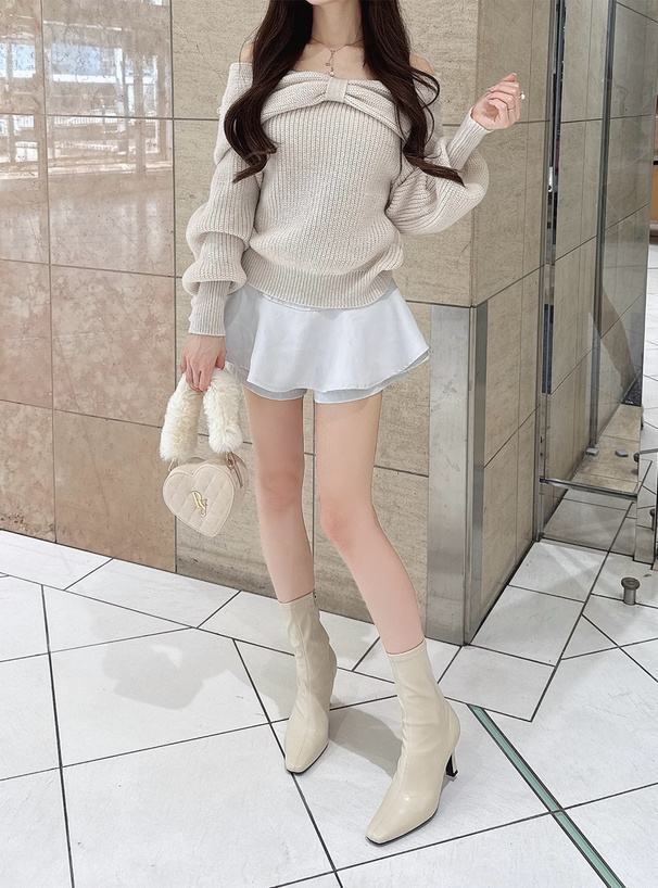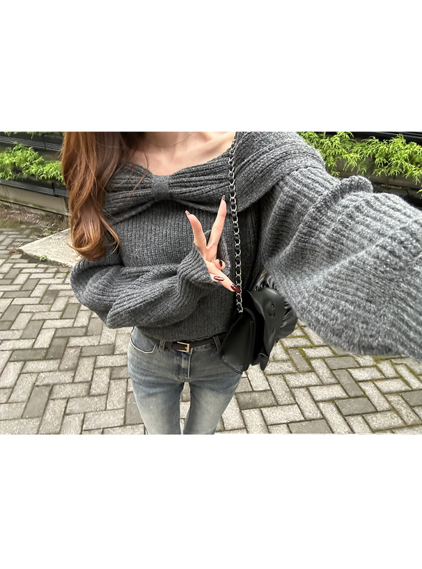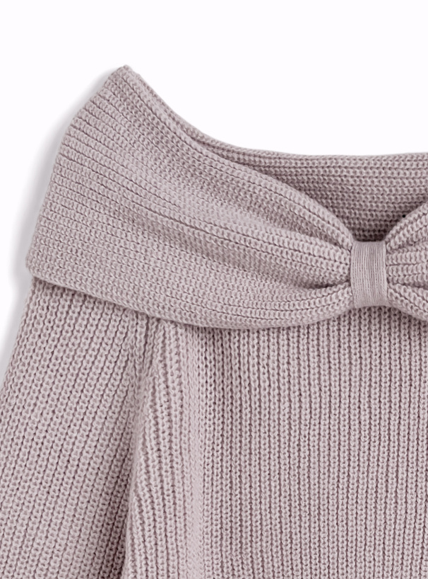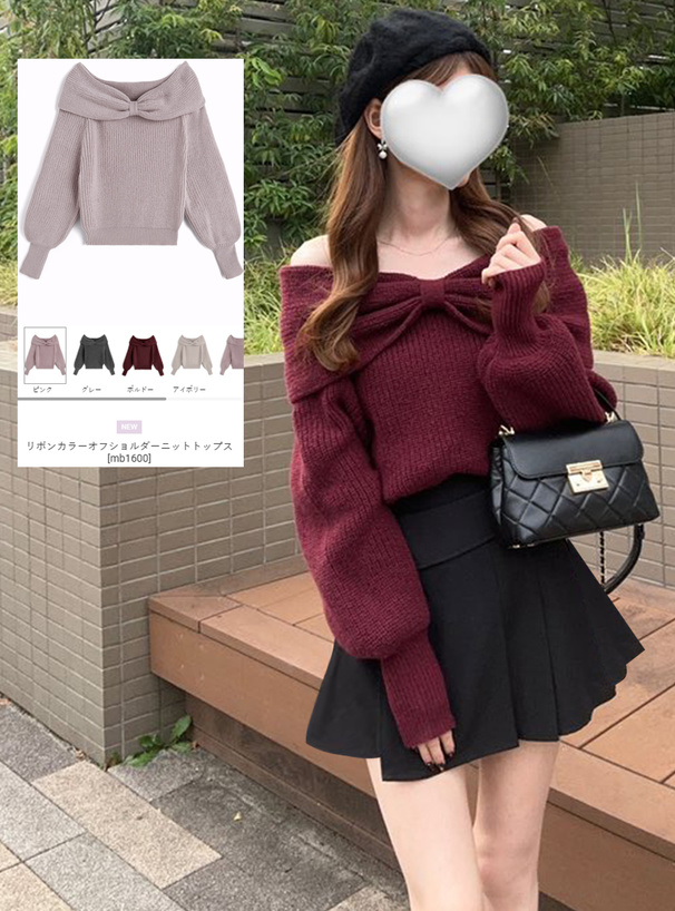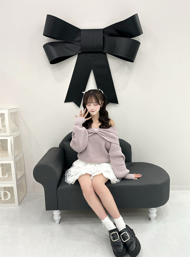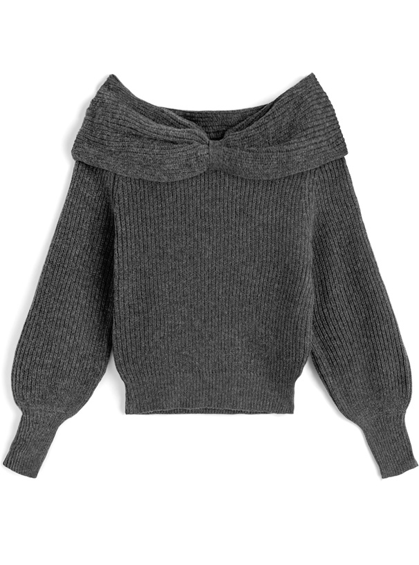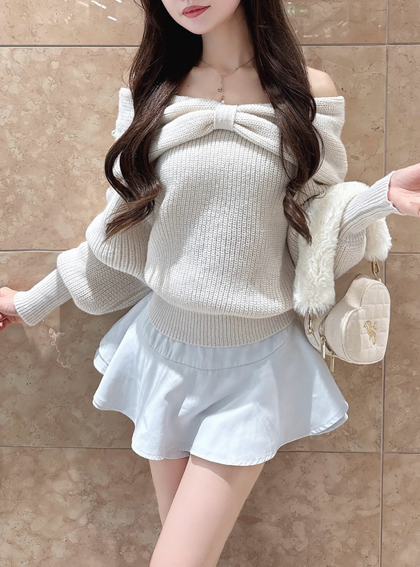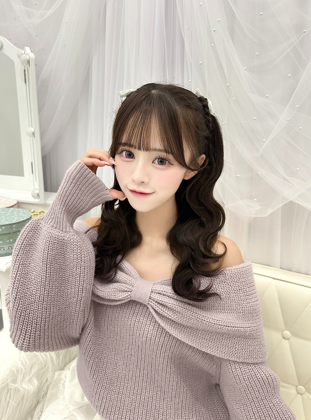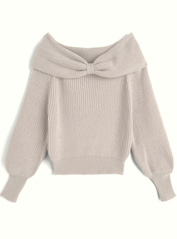 甘さたっぷりに仕上げた立体的なリボンカラーが魅力のオフショルトップス。
