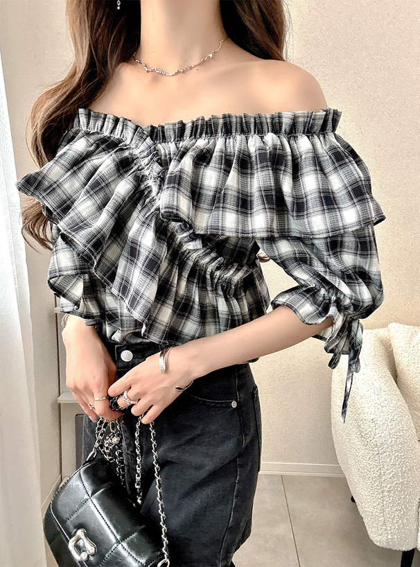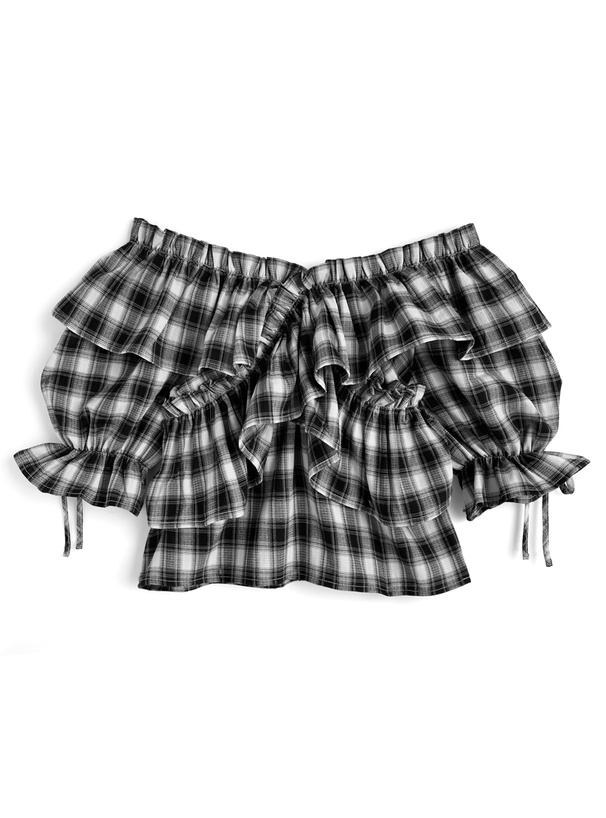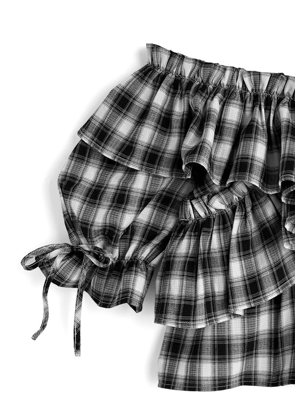シックなチェック柄が甘さ控えめで、大人ガーリーな印象に。