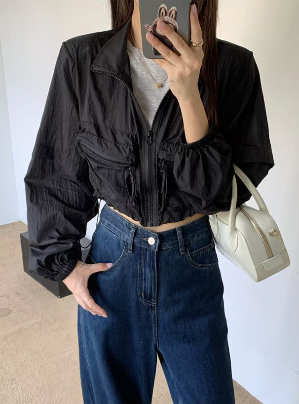 STYLE DELI ブラックブルゾン ゴールドジップ 上品カジュアル