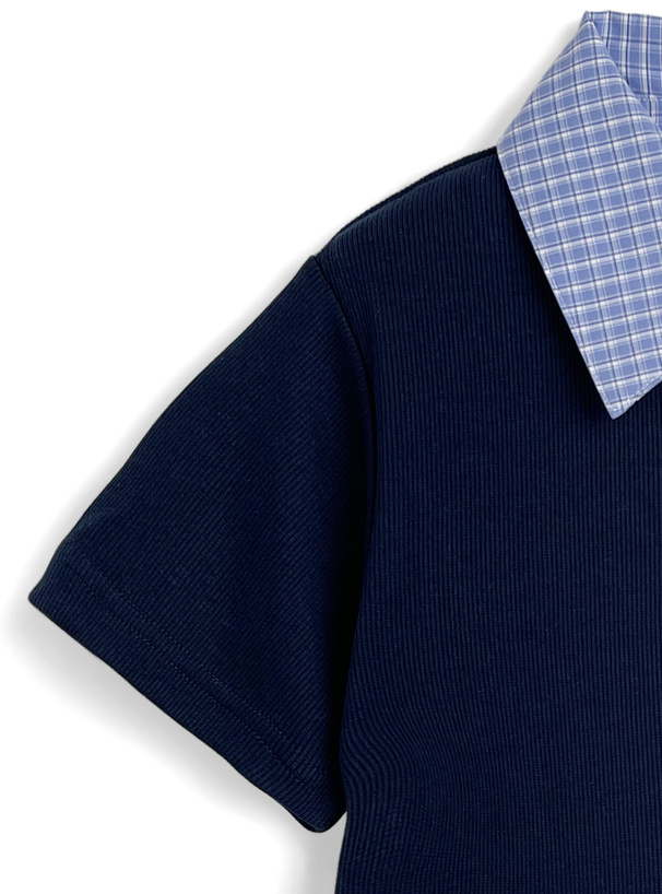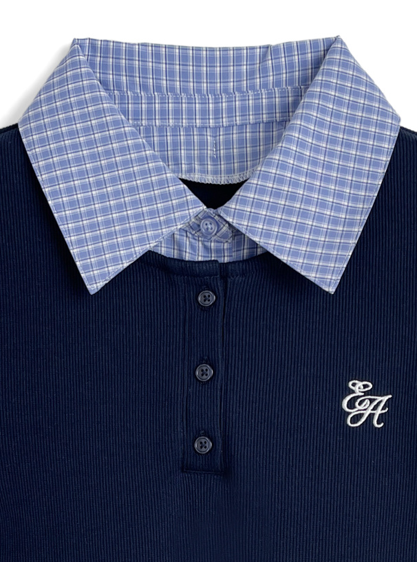 爽やかなチェックシャツにリブトップスを組み合わせたようなレイヤード風デザイン。
