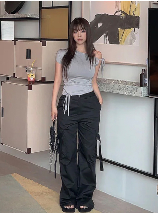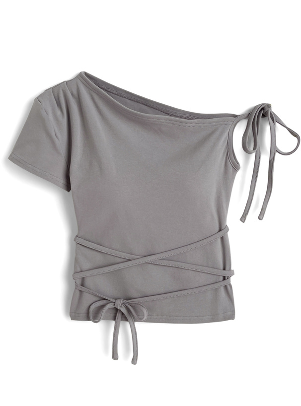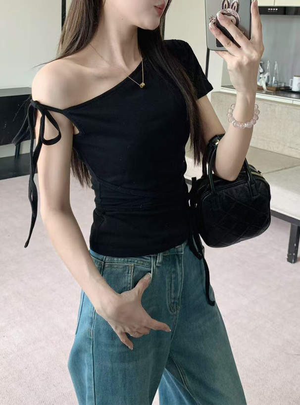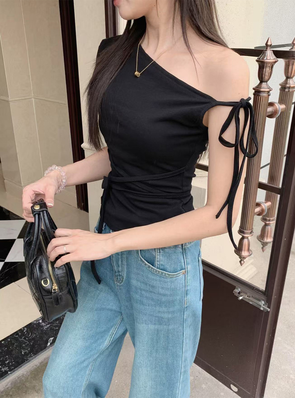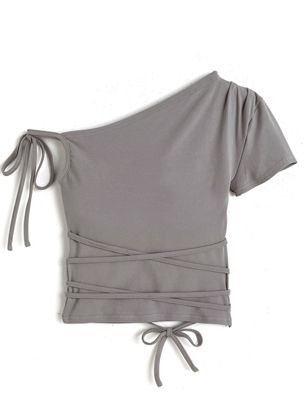 カップ付きリボンストラップワンショルダートップス[sd122]