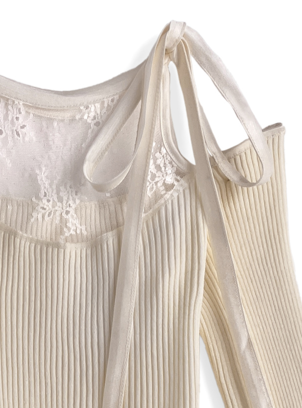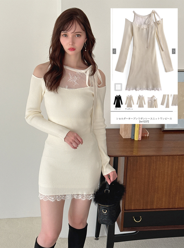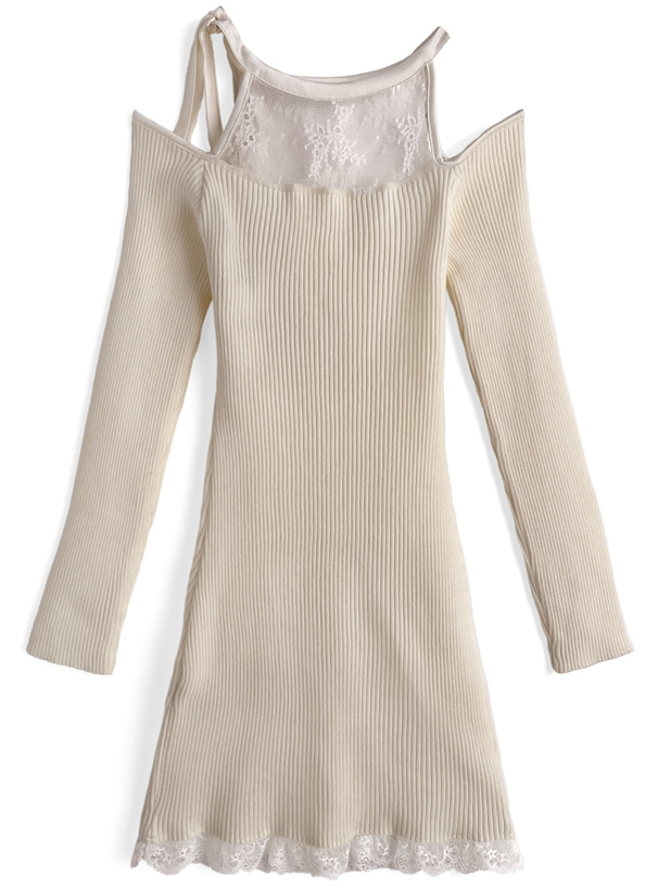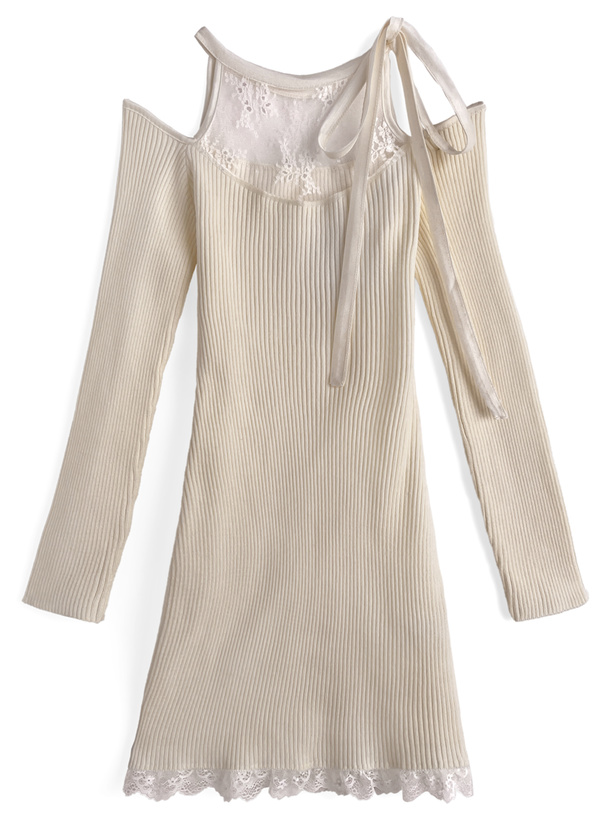 ショルダーオープンリボンレースニットワンピース[tw1237]