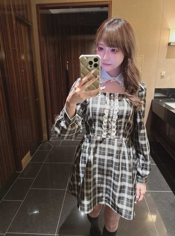 リボンギャザーチェック柄ワンピース[tg801]