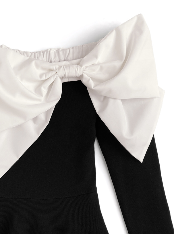 ベロアリボンオフショルダーリブニットトップス[pm812]