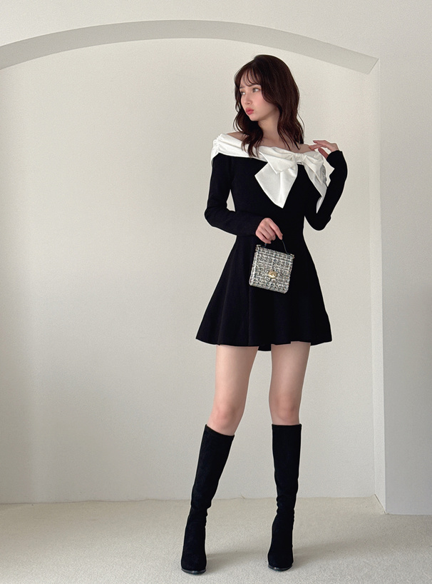 リボンビッグカラーフレアワンピース[dk1580]