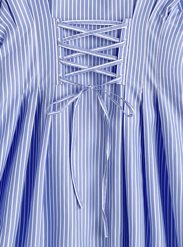 ストライプ柄シャツレイヤード風フリルワンピース[kz708]