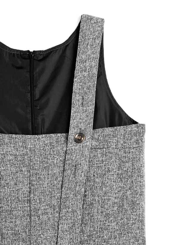 キレイ目なキーネックデザインとカジュアルなサスペンダーデザインの前後どちらでも着用できる2way仕様で、気分に合わせた着こなしが楽しめる。