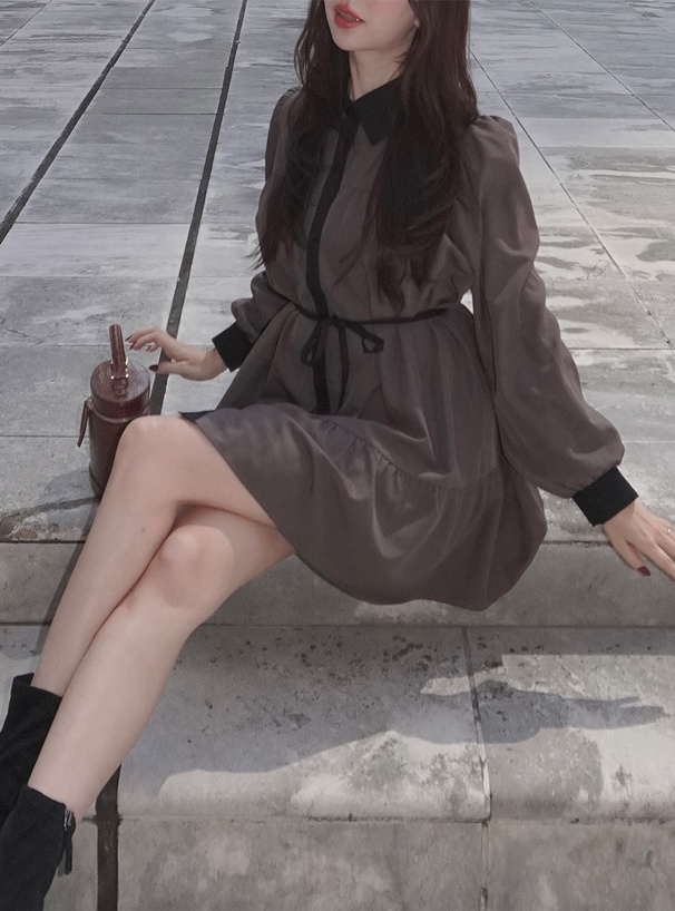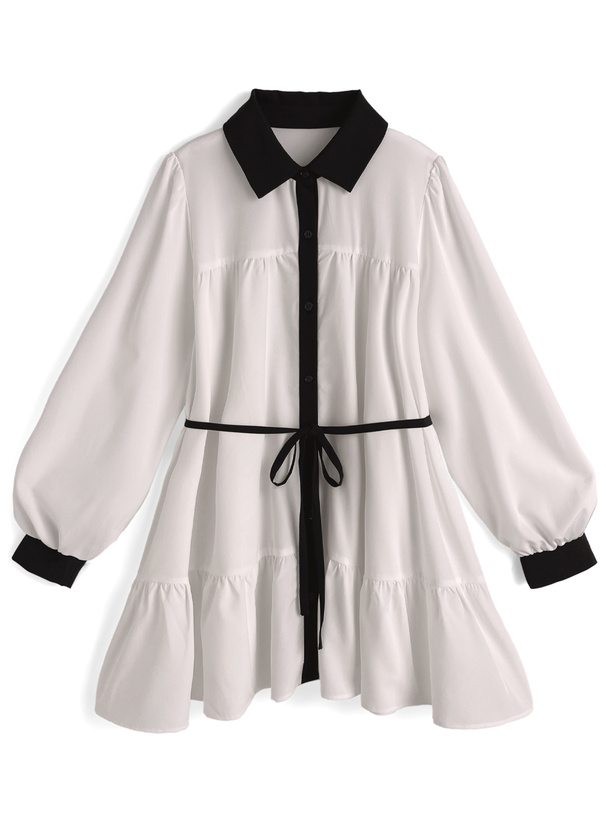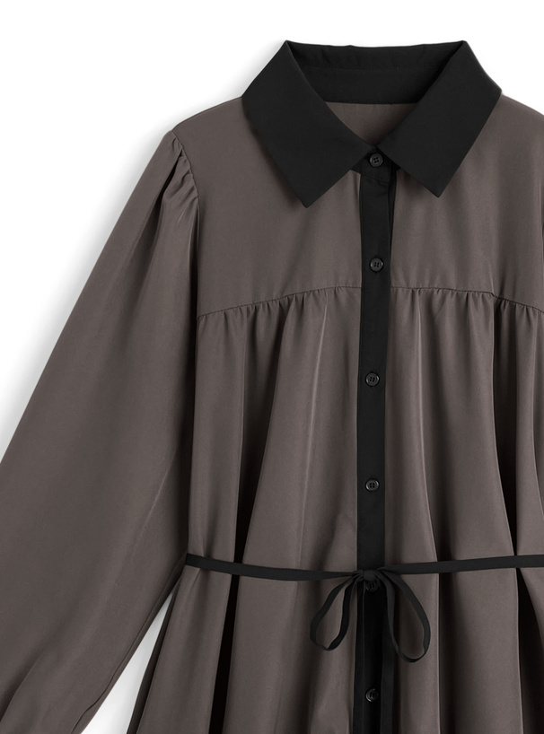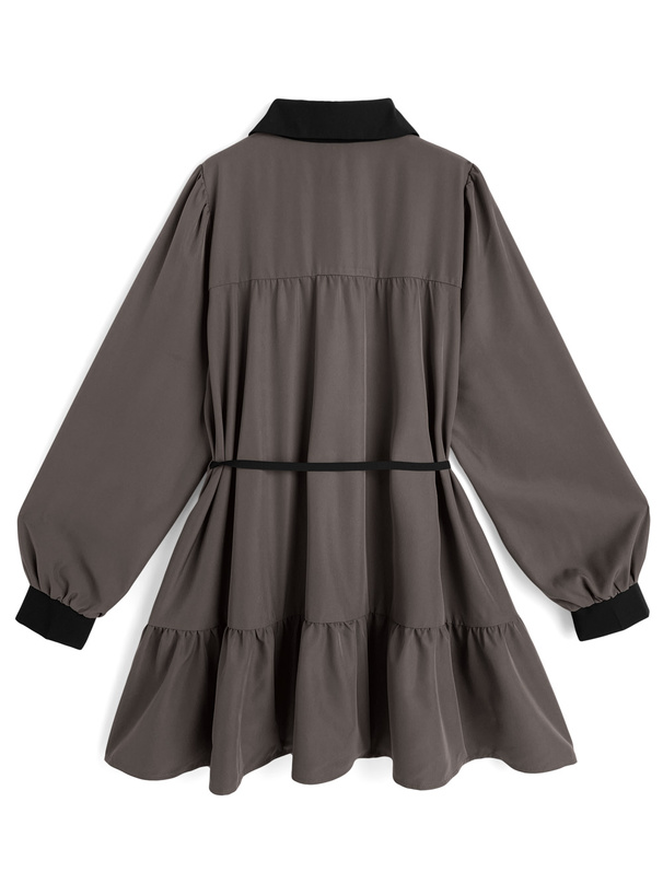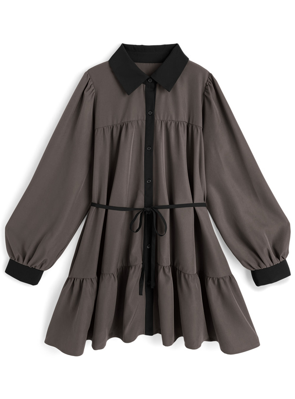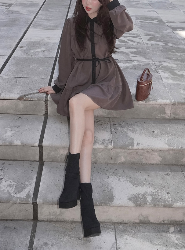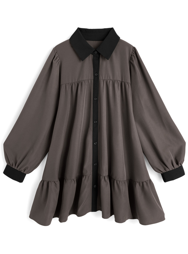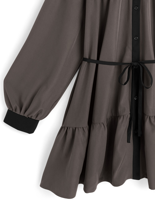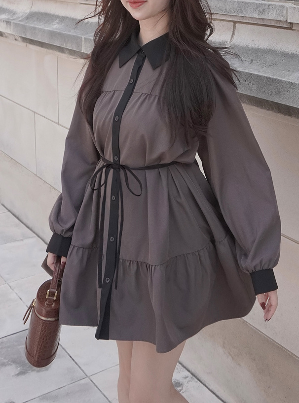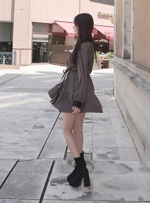 柔らかくマイルドな光沢感の生地を使用した配色ミニワンピース。