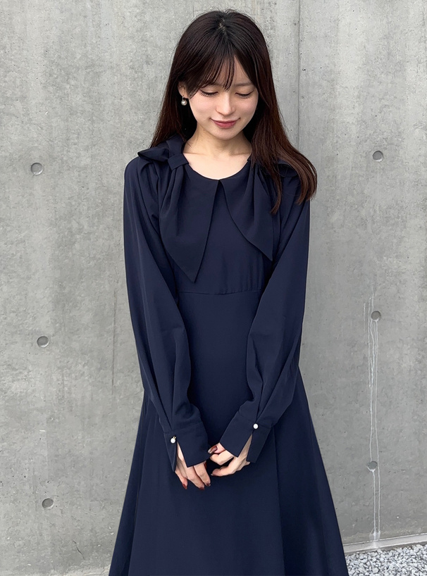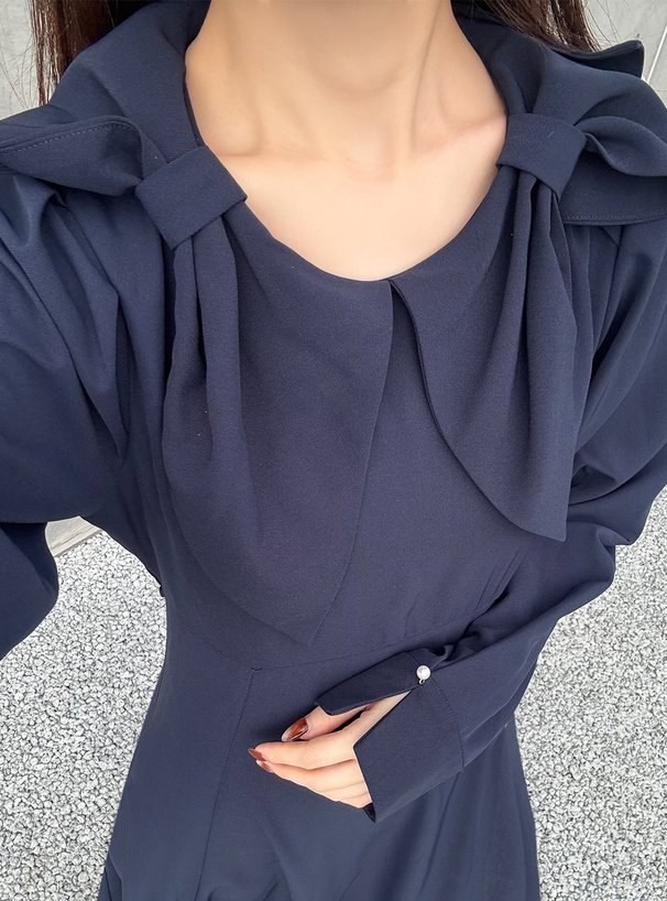 配色リボンオフショルダーマーメイドロングワンピース[sf1199]