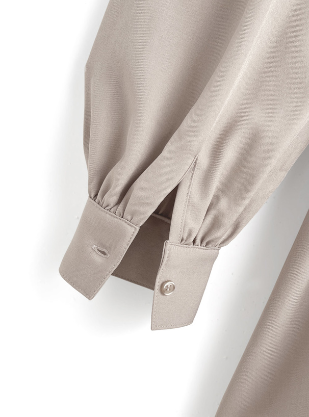 たっぷりのギャザーにショルダー部分のタックなど、立体的なシルエットにこだわったアイテム。