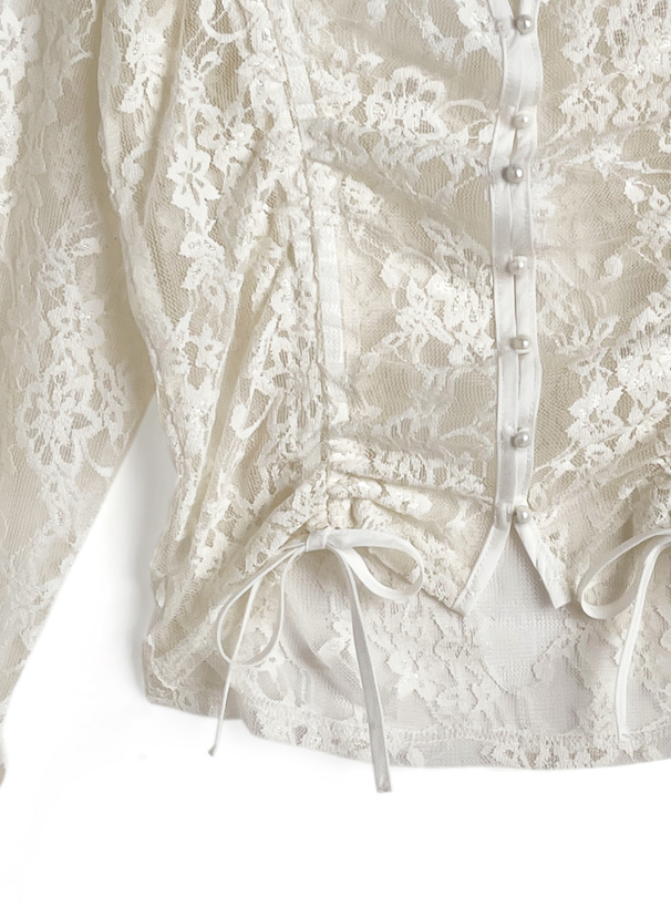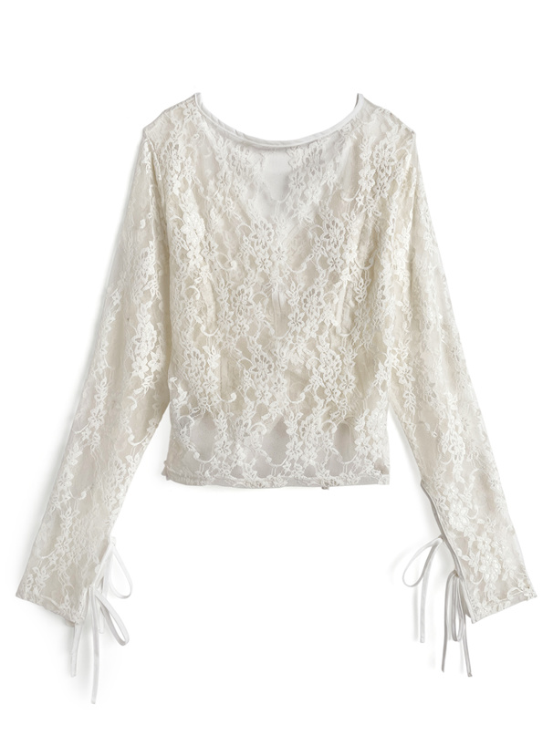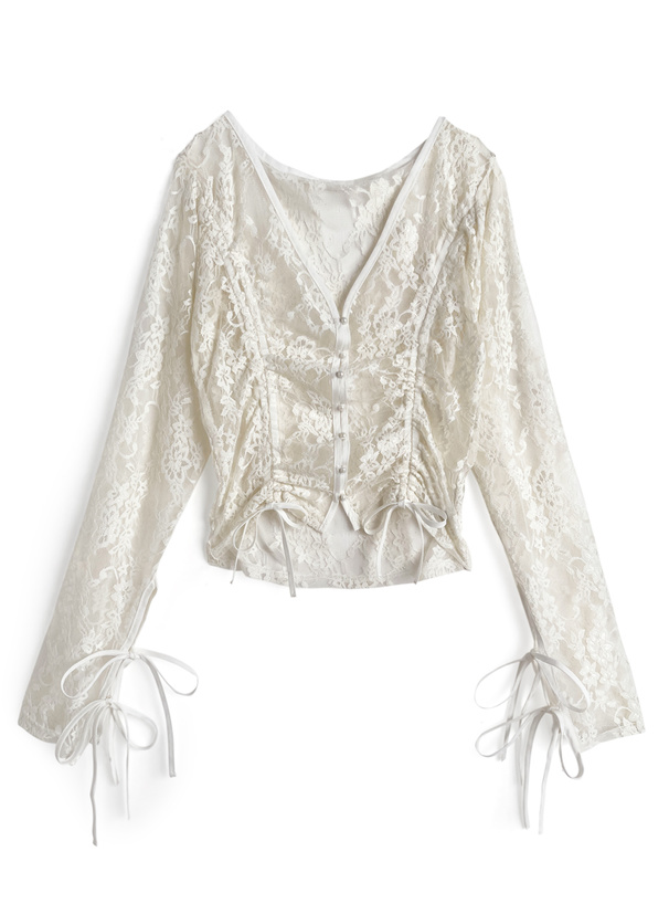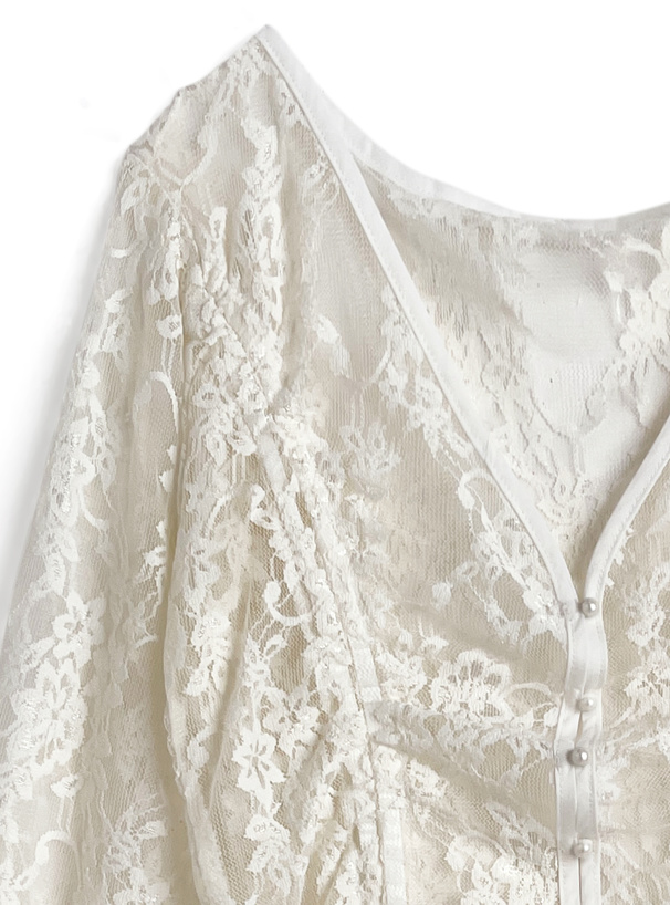 繊細なフラワーレースで仕立てたロマンティックな雰囲気のカーディガン。
