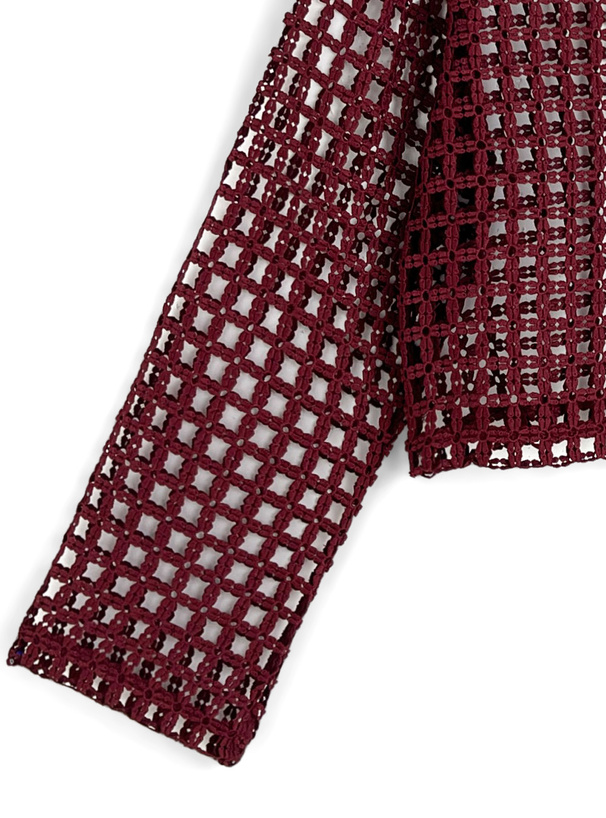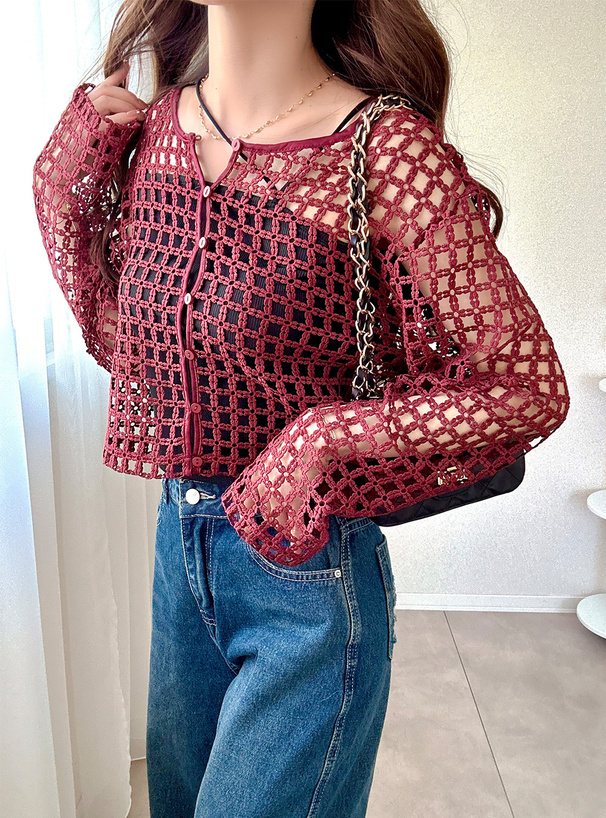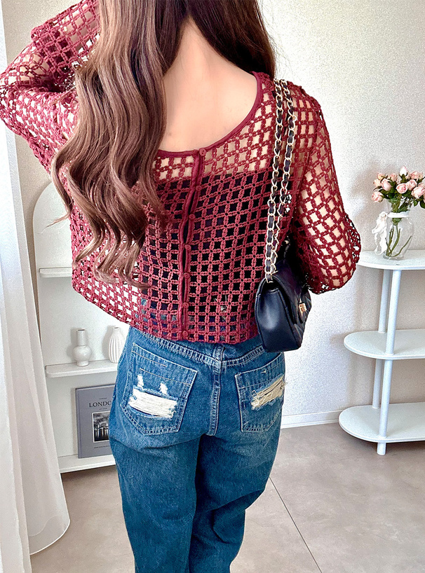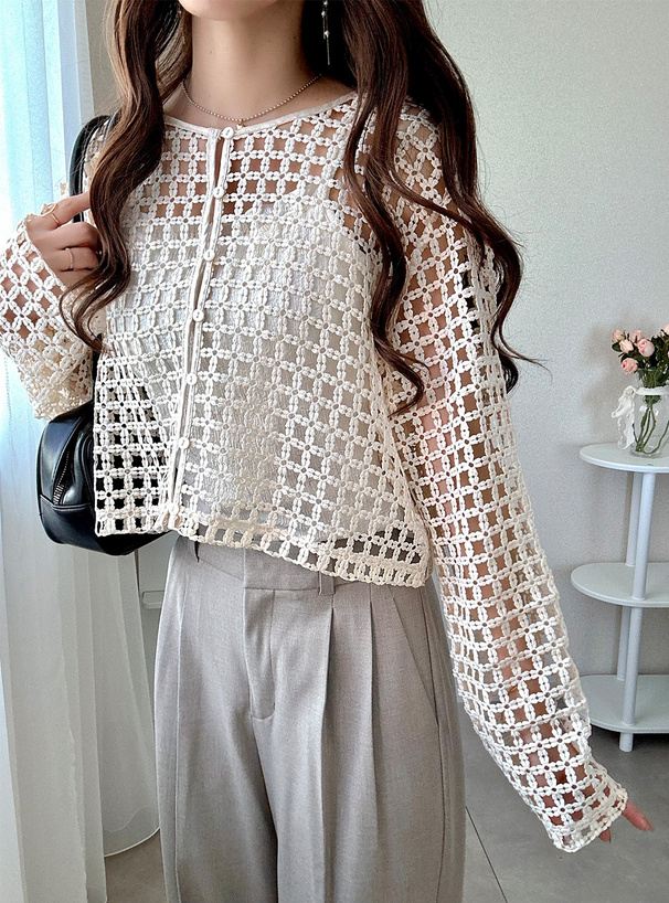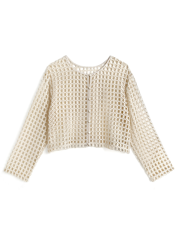 クロシェ編みしたような小さな花を並べて、メッシュにしたカーディガン。