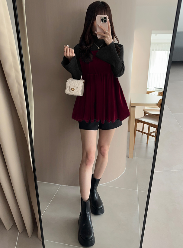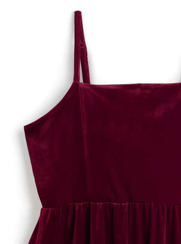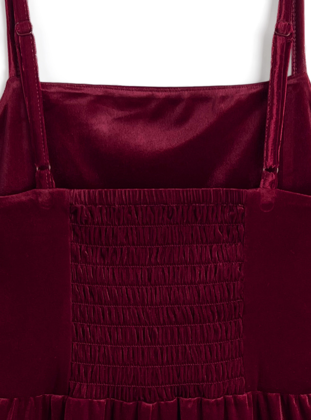 柔らかく滑らかな肌触りのベロア素材が魅力のキャミソールトップス。