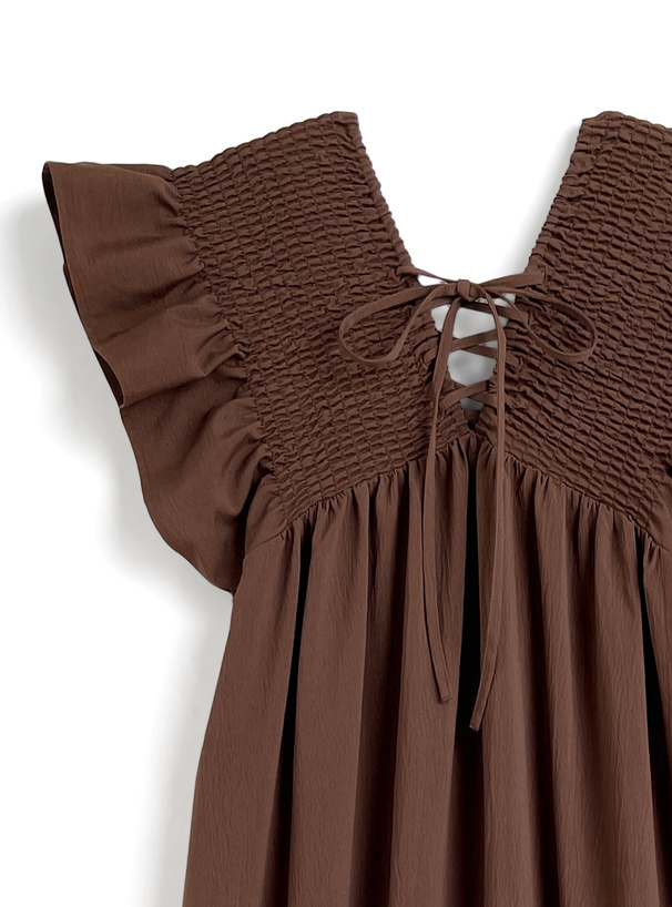 前後2wayシャーリングレースアップフリルブラウス[al299]