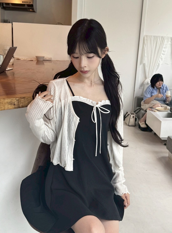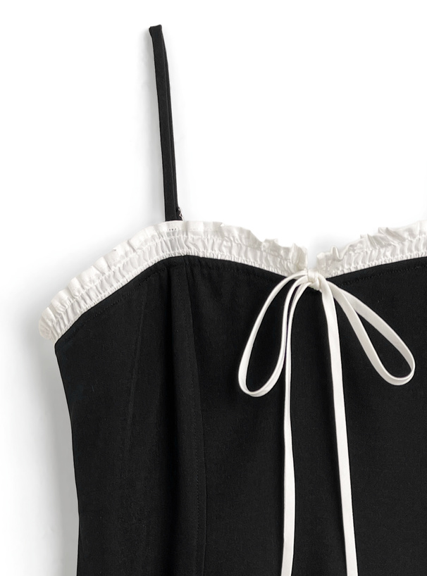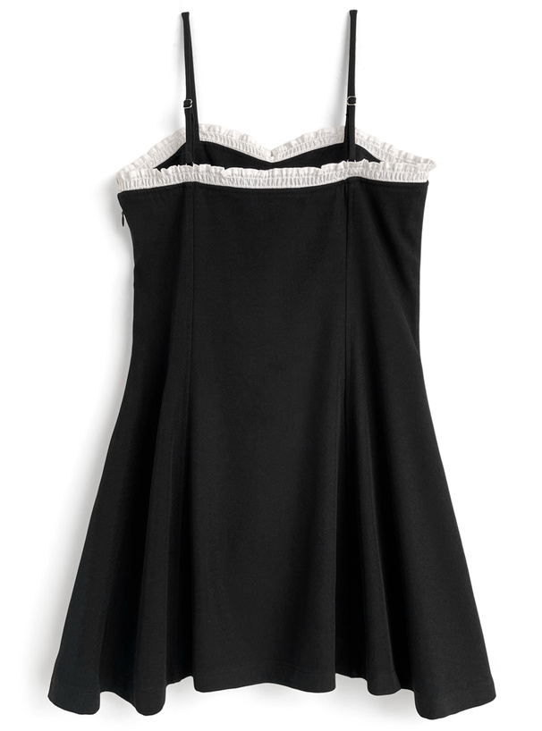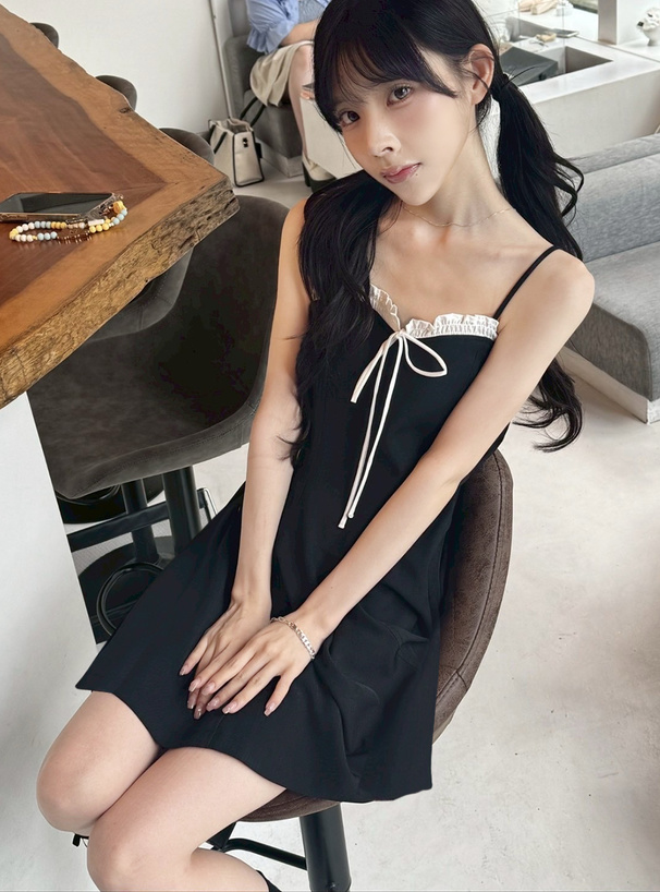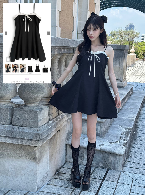 フロントのリボンやフリルディテールが華やかで、お嬢様気分になれるキュートなキャミワンピース。