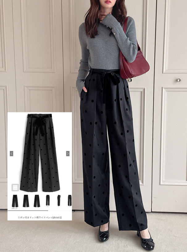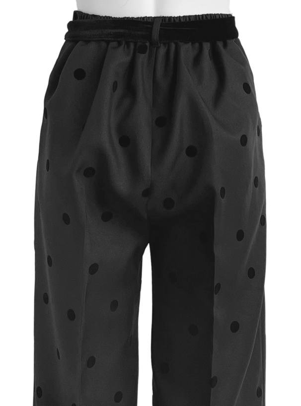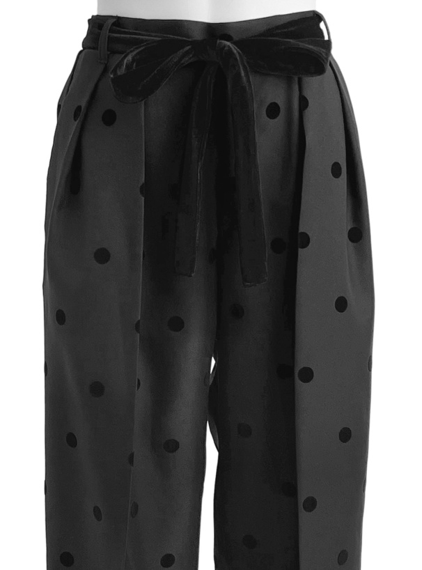 水玉柄をフロッキー加工で表現した、レトロムード漂うこだわりパンツ。