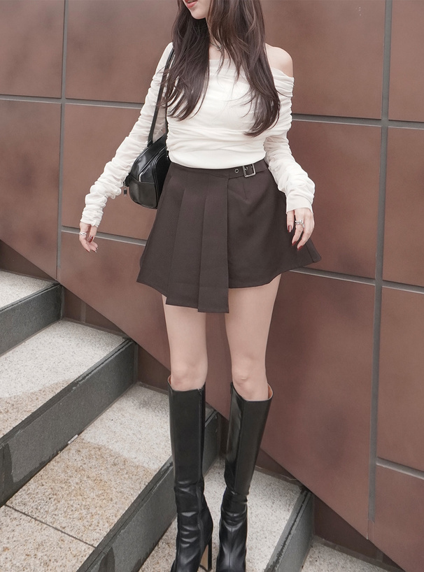GRL インパン裏地付きベルトラッププリーツミニスカート[tu1878]