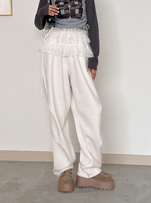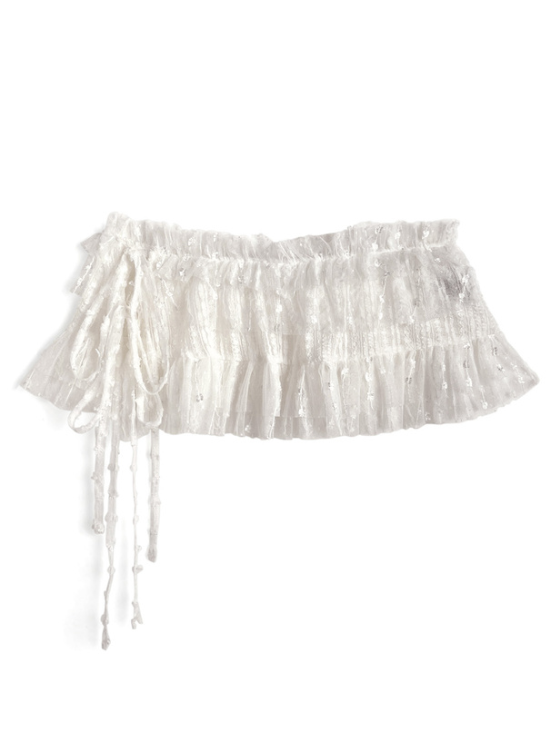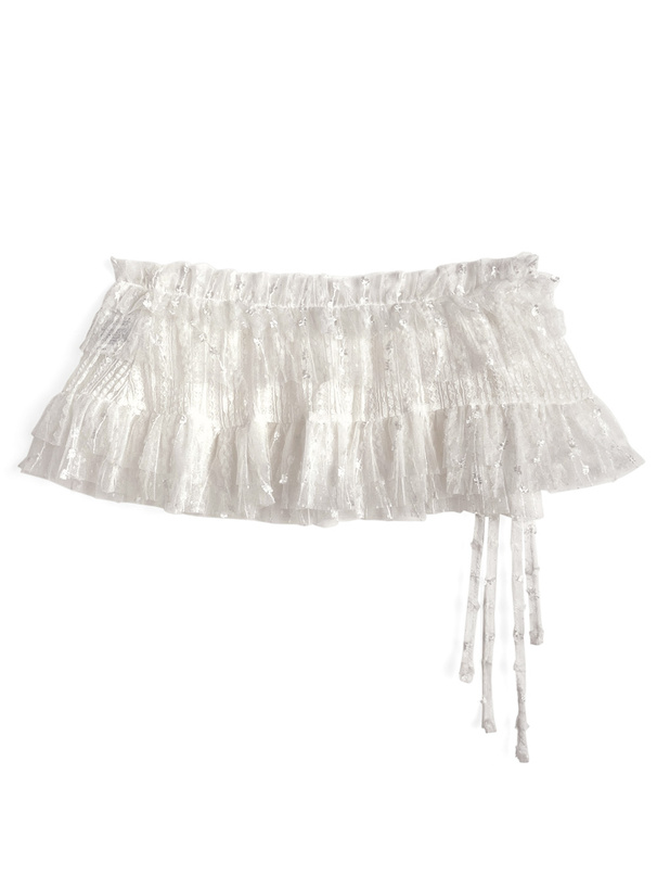 ボリュームのあるフリルの揺らぎが、腰まわりをさりげなくカバーしてくれる。