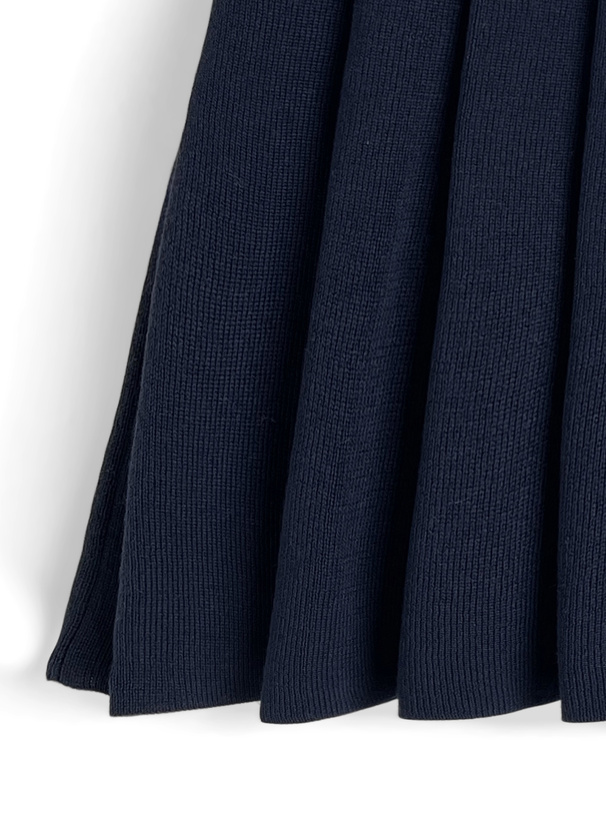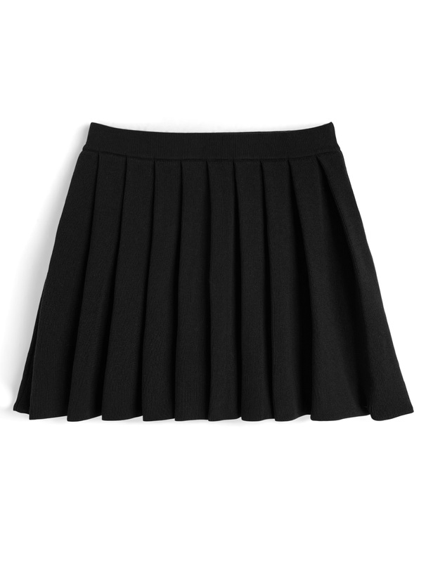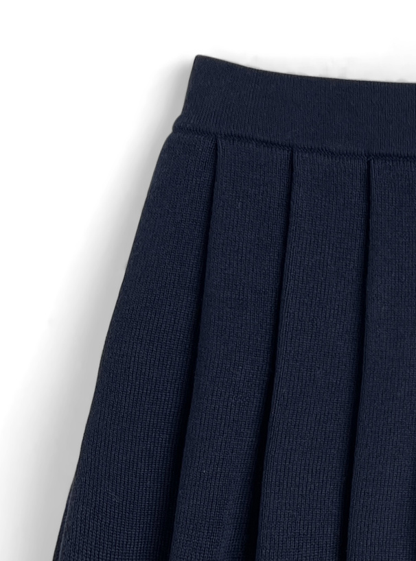 柔らかいニット素材で仕立てたプリーツミニスカート。
