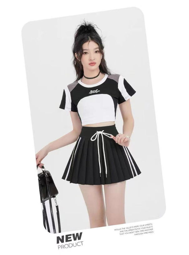 インパン裏地・ベルト付きレースプリーツミニスカート[at2595]