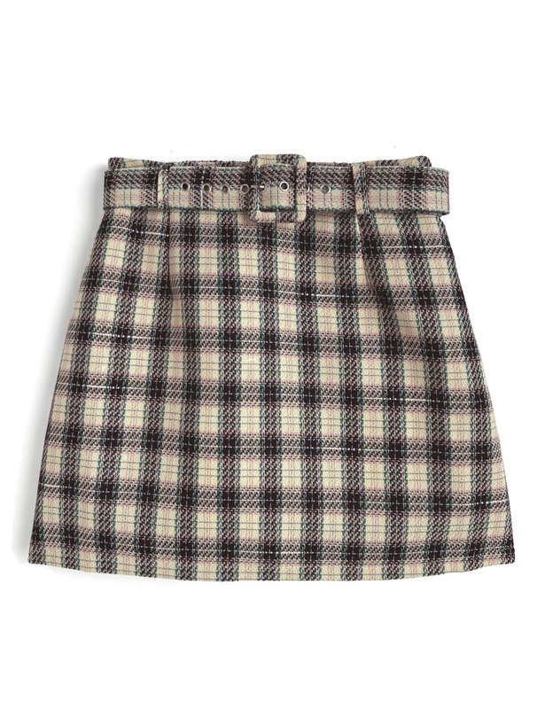 インパン裏地・ベルト付きチェック柄ミニスカート[gn368]