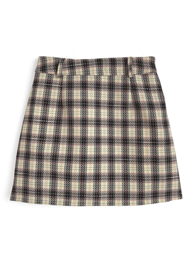 インパン裏地付きチェック柄タイトミニスカート[tw1228]
