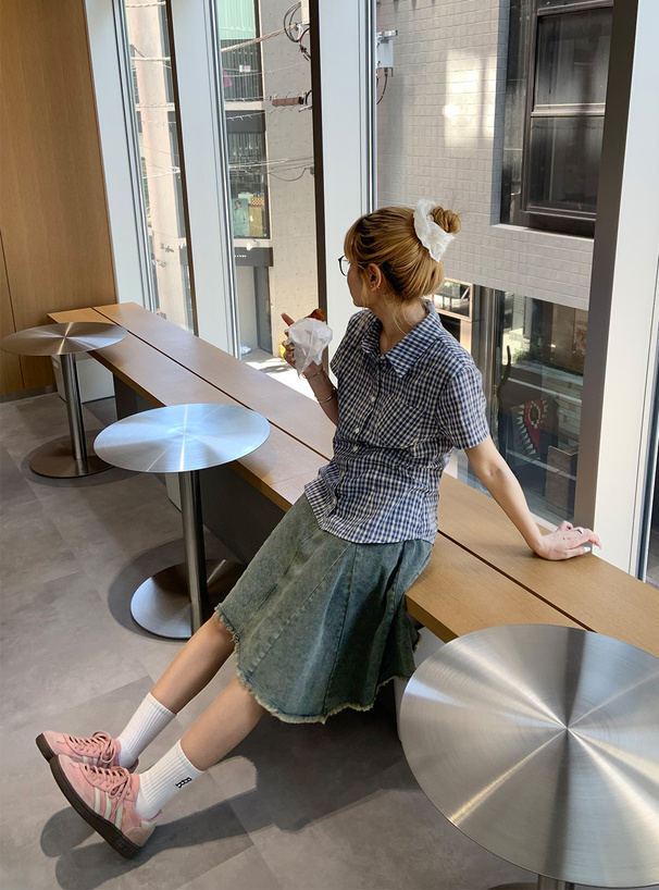 ブーツやクルーソックスとバランスの良いミディ丈。
