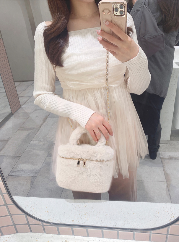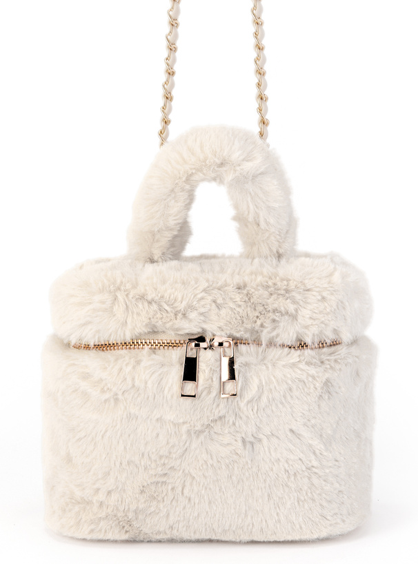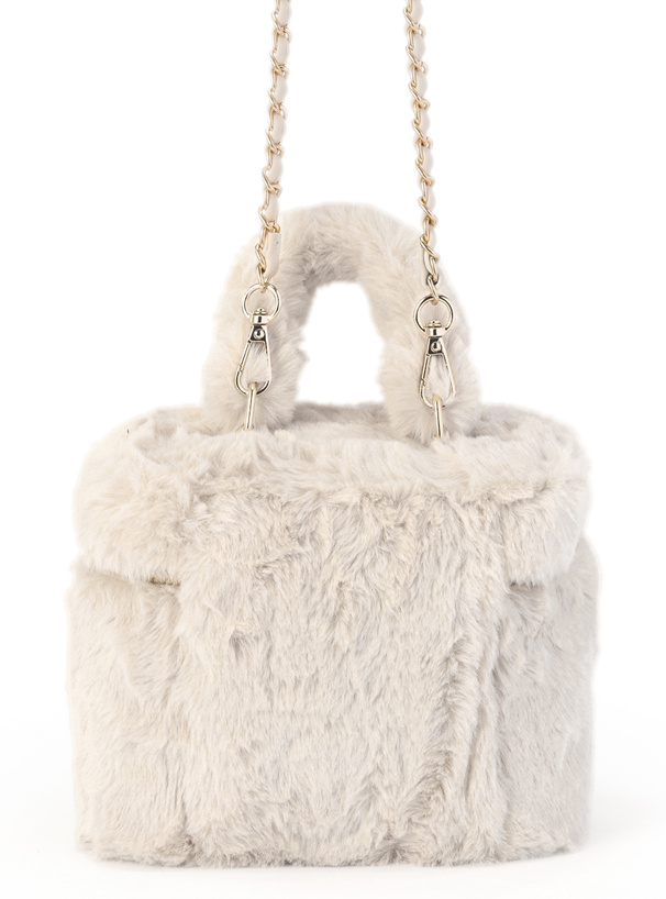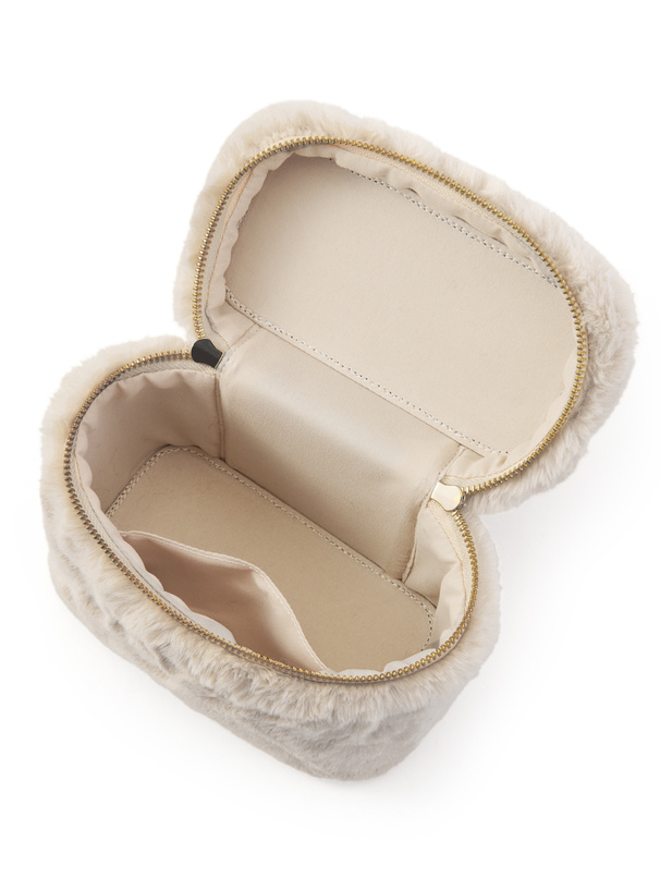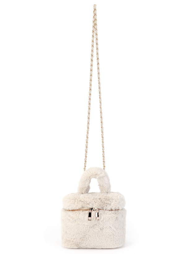 思わず触りたくなるふわふわなエコファー素材が魅力のバニティーバッグ。