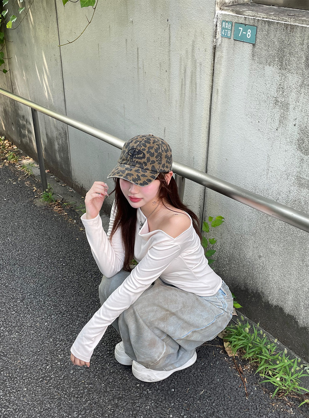 ヴィンテージライクなピグメントの色落ち感が魅力のヒョウ柄キャップ。