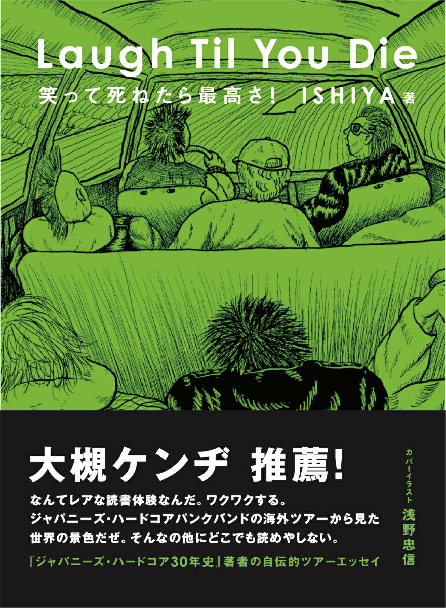 『Laugh Til You Die 笑って死ねたら最高さ!』は、ISHIYAが自身の体験をもとにシーンの30年史を綴った書籍『ISHIYA私観 ジャパニーズ・ハードコア30年史』、1992年に34歳の若さでこの世を去った片手のパンクス・MASAMIの生き様に迫った『右手を失くしたカリスマ MASAMI伝』に続く、ノンフィクションシリーズの第三弾。アメリカ、オーストラリア、韓国、カナダ、スウェーデン、フィンランド、チェコ、イギリス、イタリア、オーストリア、セルビア……FORWARD / DEATH SIDEのボーカリストとして、世界各国でライブを行ってきた男・ISHIYA。その半生は、ハードコアを愛する仲間たちとの熱い信頼に支えられたものだったーー。東京での無宿生活、ハードコアとの出会い、亡き友・CHELSEAと夢見た「世界制覇」の野望、初アメリカツアーの洗礼、連日続く狂騒のパーティー、人種差別の体験、極貧のオーストラリアツアー、隣国・韓国のパンクスと築いた絆、憧れの地・イギリスでの大失態、ニューヨークに刻んだ友の魂、そしてコロナ禍を経て訪れた未知なる東欧。かつては家さえもなく東京を彷徨い歩いていたパンクスが、バンドを通じて仲間たちと出会い、世界各国で精力的にライブを行うアーティストになるまでを、当事者ならではのリアルな筆致で綴った一冊だ。タイトルの「Laugh Til You Die」は、DEATH SIDEの楽曲名をそのまま使ったもので、著者の生き様が表れている。 カバーイラストは、同シリーズではお馴染みとなった俳優・浅野忠信の描き下ろしで、ISHIYAらのツアーをイメージしたものとなっている。帯には大槻ケンヂが「なんてレアな読書体験なんだ。ワクワクする。ジャパニーズ・ハードコアパンクバンドの海外ツアーから見た世界の景色だぜ。そんなの他にどこでも読めやしない。」と推薦文を寄せている。