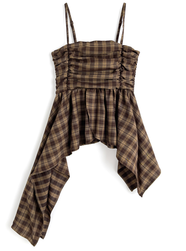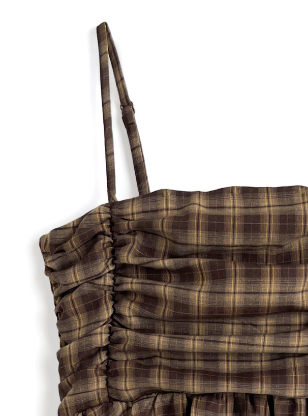 落ち着きのあるチェック柄のさらりとした素材で仕立てたチュニック。
