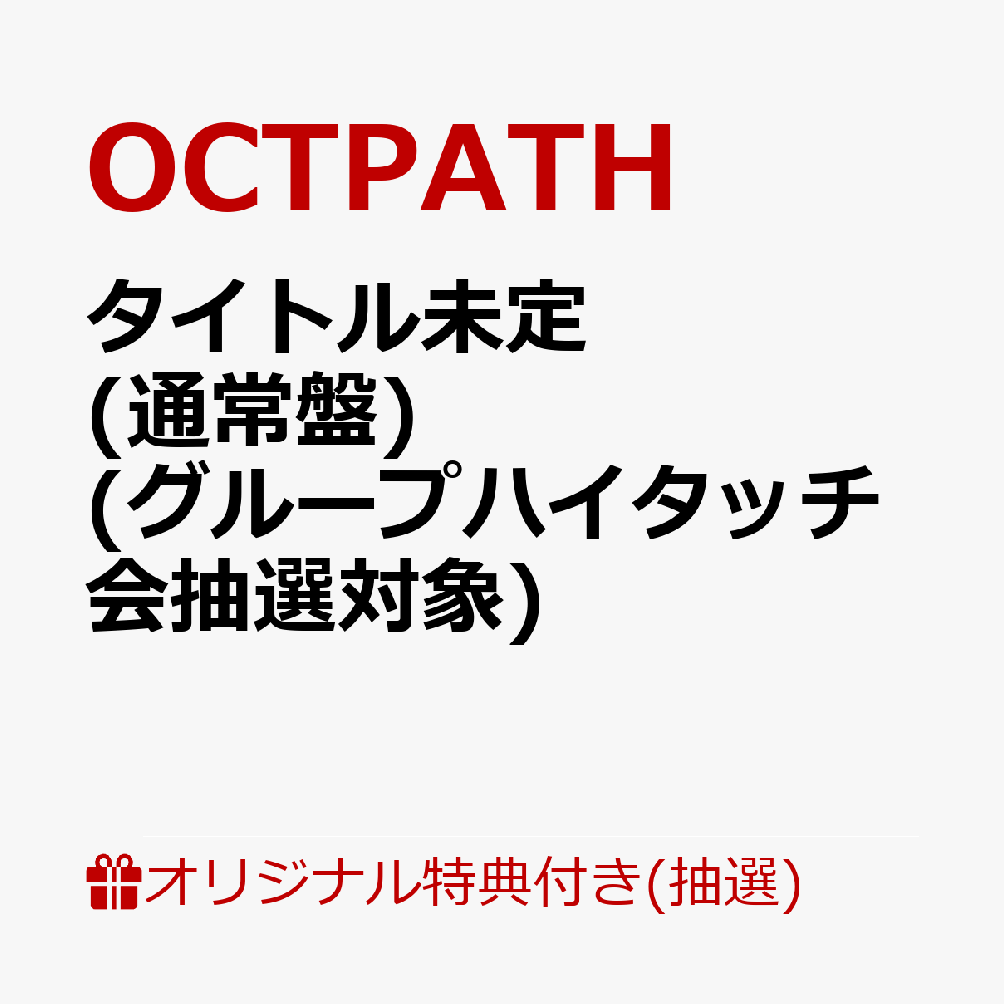 OCTPATH 8th single『タイトル未定』発売記念グループハイタッチ会開催決定!いつもOCTPATHを応援いただきましてありがとうございます。OCTPATH 8th single『タイトル未定』の発売を記念して、グループハイタッチ会の開催が決定いたしました!2025年12月17日(水)発売のOCTPATH 8th single『タイトル未定』初回盤または通常盤を楽天ブックス内のグループハイタッチ会抽選対象ページにてご予約いただいた方を対象に抽選を行い、150名様をグループハイタッチ会にご招待いたします!当選された方は、OCTPATHメンバーと対面でグループハイタッチ会にご参加いただけます。以下のご予約方法、注意事項をご確認のうえこの機会に是非ご応募ください。実施日時・開催会場【2026年1月10日(土)TOC有明コンベンションホール 4F EAST HALL】//saiji2.toc.co.jp/ariake/access/グループハイタッチ会 / [受付開始] 17:40〜 / [参加締切] 18:00 / [イベント開始] 18:00〜(予定)グループハイタッチ会 参加メンバー太田駿静、海帆、栗田航兵、古瀬直輝、小堀柊、高橋わたる、西島蓮汰、四谷真佑抽選申込期間とご予約に関して対象商品OCTPATH 8th single『タイトル未定』発売日:2025年12月17日(水)・初回盤(CD+DVD)/ UMCK-7292 / ¥2,200(税込)・通常盤(CD only)/ UMCK-5795 / ¥1,400(税込)抽選申込スケジュール受付期間:2025年10月16日(木)18:00 〜 2025年10月20日(月)23:59当落通知:2025年10月27日(月)夕方頃「グループハイタッチ会」について■参加をご希望のお客様は、楽天ブックスにて8th single『タイトル未定』初回限定盤〈グループハイタッチ会抽選対象〉 もしくは 8th single『タイトル未定』通常盤〈グループハイタッチ会抽選対象〉をご予約ください。グループハイタッチ会抽選対象ではない8th single『タイトル未定』初回限定盤・通常盤をご購入のお客様は抽選の対象外となります。■各部ごとに販売期間が異なります。ご希望の部の販売期間にご購入ください。■1枚ご購入で一口応募となります。抽選方式につき、複数口ご購入されても落選する場合もございます。■同一人物による複数の会員登録は禁止です。複数アカウントでのイベント参加が発覚した際は不正行為とみなし、イベントの参加をお断りさせていただきます。■1回のご当選につきグループハイタッチ会にお申込みいただいた1名様のみがご参加いただけます。■1部につき、複数回当選する可能性がございます。1名様で複数の部に当選する場合がございます。■ご当選された方には「イベント参加用QRコード」を楽天ブックスよりグループハイタッチ会:2025年10月27日(月)夕方頃にご案内致しますので、イベントご参加時に必ずお客様のスマホに送付したイベント参加用QRコードをご持参ください。(スクリーンショットやプリントアウトしたQRコードでは入場できません。)・抽選結果は当選、落選に関わらずメールにてご連絡させていただきます。・各部当選発表日の翌日になっても抽選結果のメールが届かない場合はお手数をおかけいたしますが以下よりお問い合わせください。・お問い合わせはこちら⇒ //books.faq.rakuten.net/s/askドメイン指定等の設定をされている方は、ドメイン「mkrm.rakuten.co.jp」・「faq.rakuten.co.jp」からのメールが受信できるように設定変更をお願い致します。※必ずお読みください。※当商品はクレジットカード決済限定にてご注文を承ります。※当商品は、下記のスケジュール以降はキャンセルができません。グループハイタッチ会:2025年10月20日(月)24:00以降※商品の受取拒否等があった場合、今後一切のイベントへのご参加をお断りさせていただく場合がございます。 ※グループハイタッチ会抽選対象ページでのご購入は、楽天ブックスオリジナル特典(トレカ)は対象外となりますのでご注意ください。■グループハイタッチ会の当選権利は、ご選択頂いた開催部(時間帯)のみ有効となります。■当選された開催部(時間帯)内での対応とさせていただきます。対象時間外での対応は致しかねますことをご了承ください。■1回のご当選につき、グループハイタッチ会に1回ご参加いただけます。■列が途切れ次第終了とさせていただきます。※同一開催日、同一部で複数回ご当選された場合は、混雑のためお手持ちのグループハイタッチ会参加券を全て使い切れない可能性があります。また、当日複数部へ当選された方は、早めに受付をしていただかないと次の部の受付に間に合わない場合がございます。その場合、振替対応、返品、返金、キャンセルは一切致しません。最終的にはお客様のご判断になりますが、ご参加できる範囲内での計画的なお申し込みをお願い申し上げます。グループハイタッチ会 当日、会場に必ずご持参いただくもの1 楽天ブックスよりご案内したQRコード(スクリーンショットや印刷されたものは不可)2 主催者が指定する「顔写真付きの本人確認書類」※どちらか一つでもお忘れの場合はご参加いただけません。※一度使用したQRコードの再使用はできません。※楽天ブックス会員登録の際は、正確なご記入をお願いし