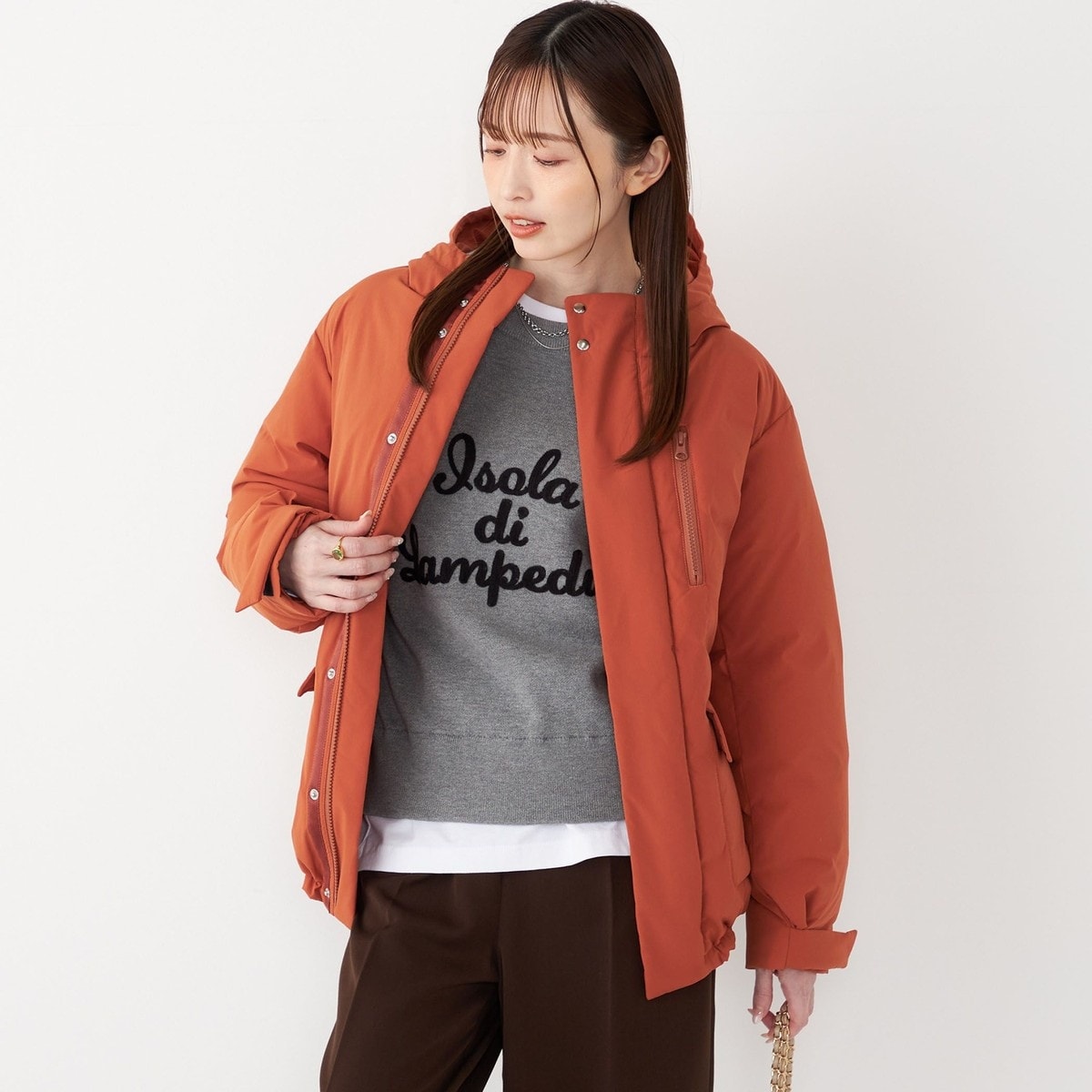 フード付きでボリュームのあるシルエット。