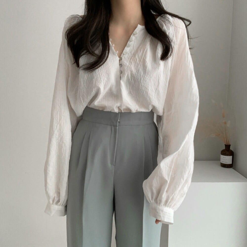 清潔感のあるシンプルなブラウスが登場。