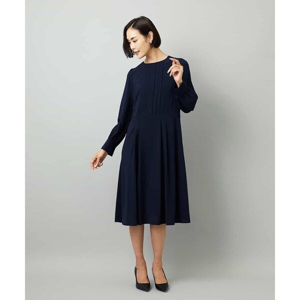 ◆通勤やセレモニーにも映える、ノーカラープリーツのきれいめワンピース◆