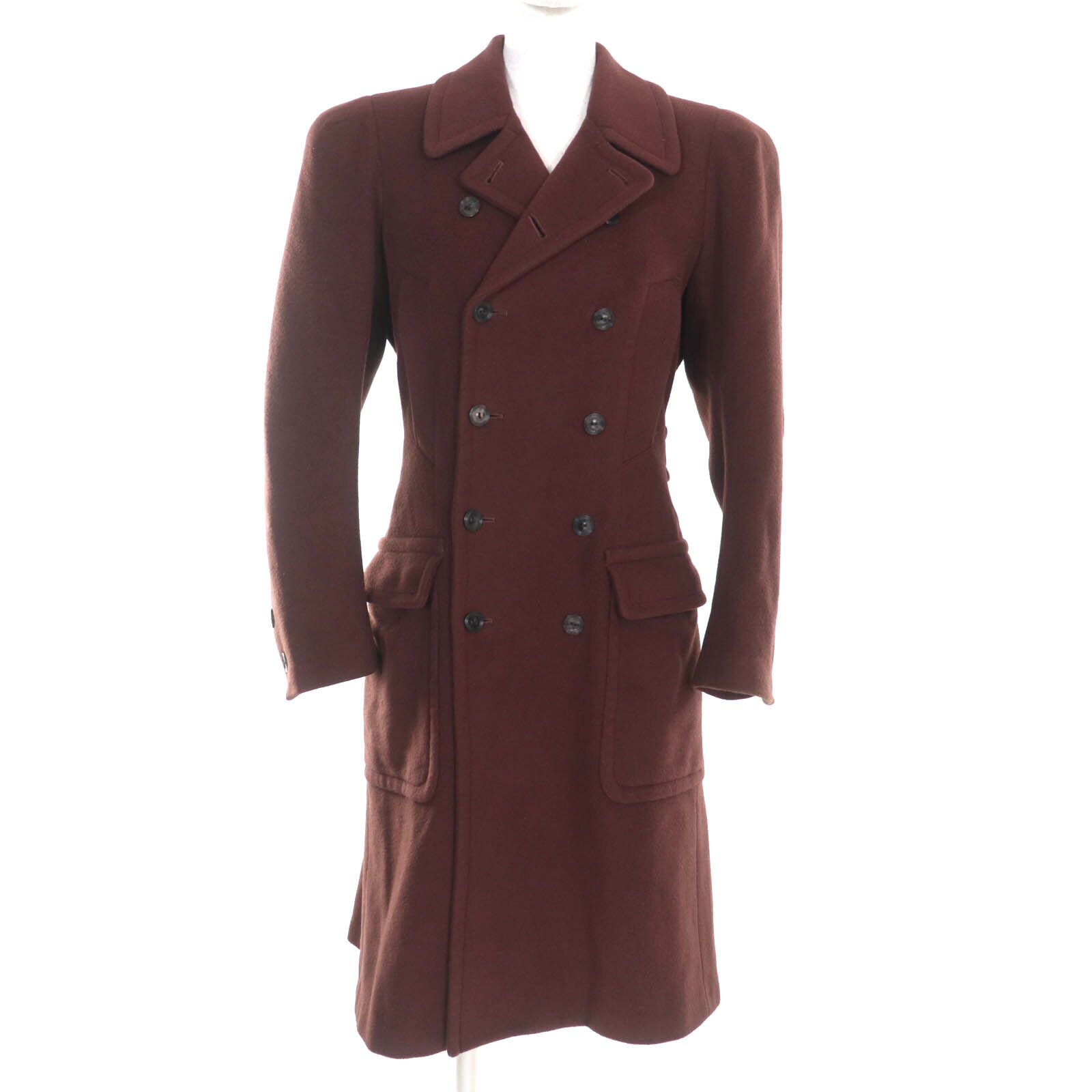 極美品□Jean Paul GAULTIER HOMME ジャンポールゴルチエ オム ヴィンテージ ウール100% レザーベルト ダブル トレンチコート ボルドー 48 日本製 正規品 メンズ