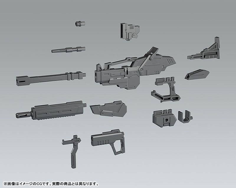 ●「V.D.ライフル」はユニットごとに細分化されたバーツの組み合わせにより、10種類以上の形態に組み替え可能なマルチウェポン。手持ちだけでなく、3mm軸、3mm穴による取り付けも可能。