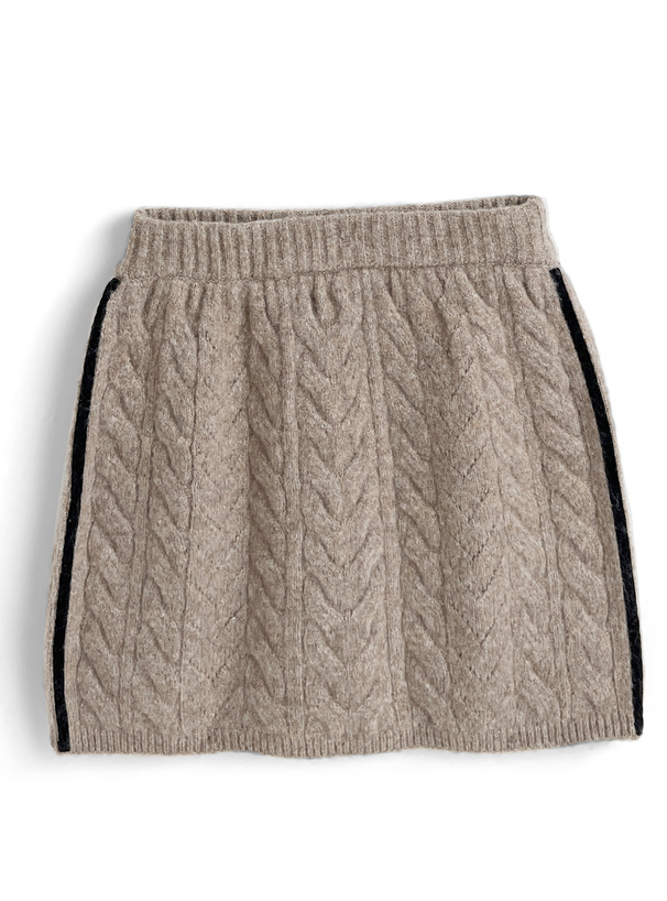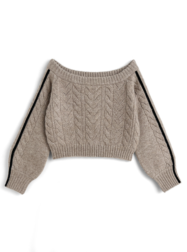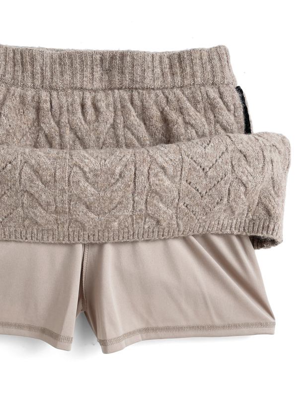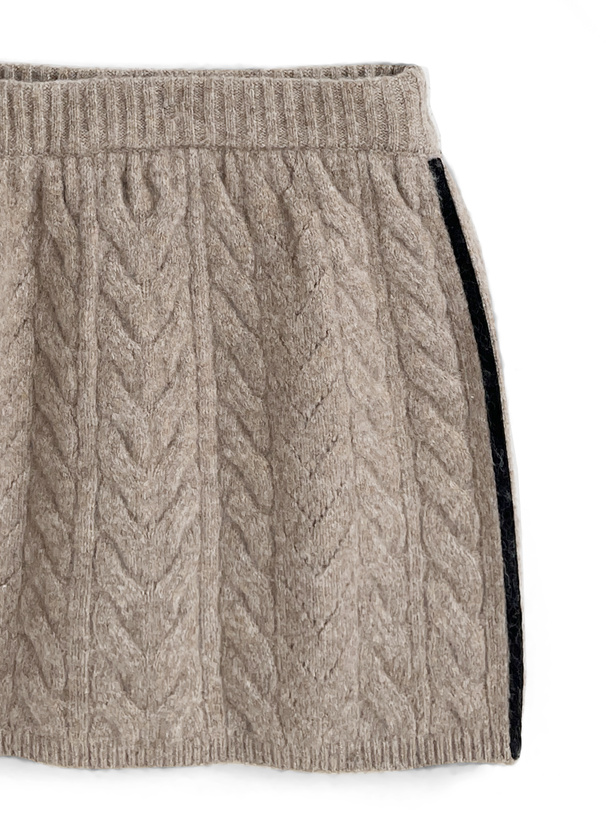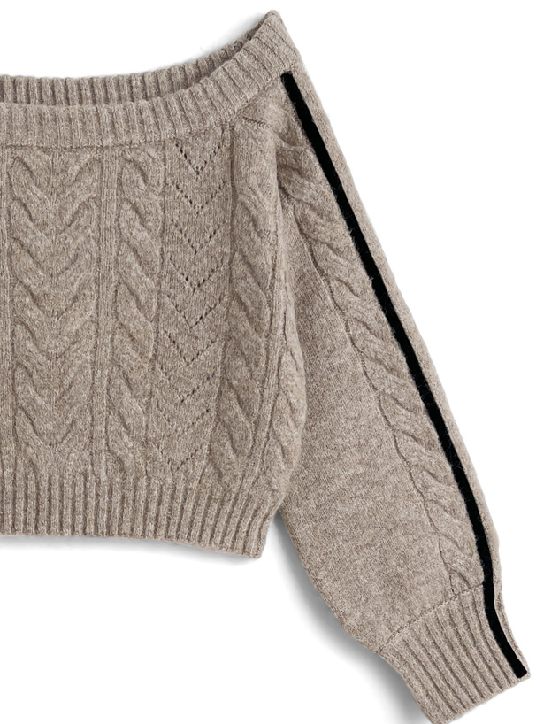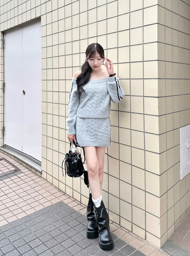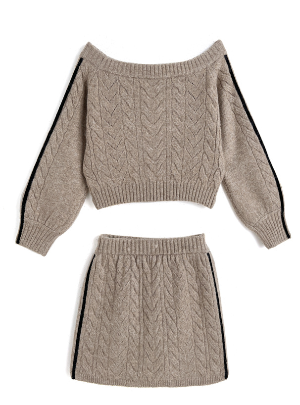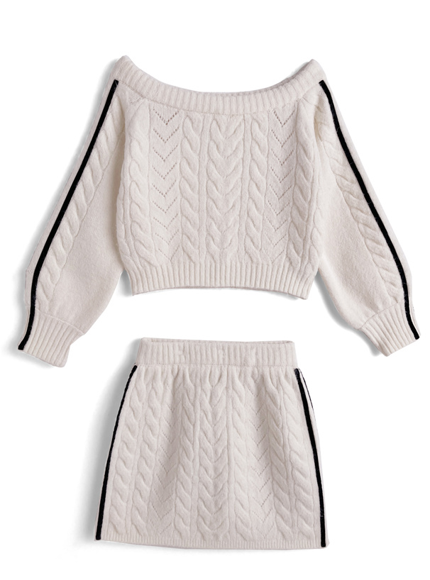 立体的に編み上げたケーブルニットのセットアップが登場。