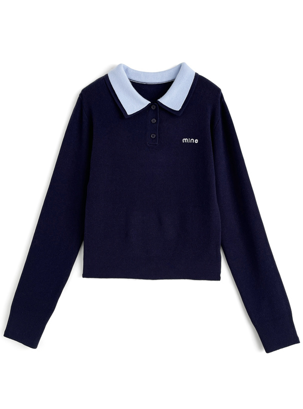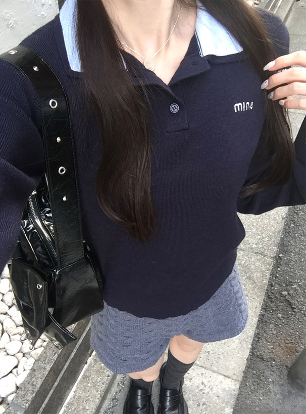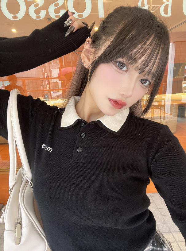 マニッシュな雰囲気漂うダブルカラーデザインのポロニットトップス。