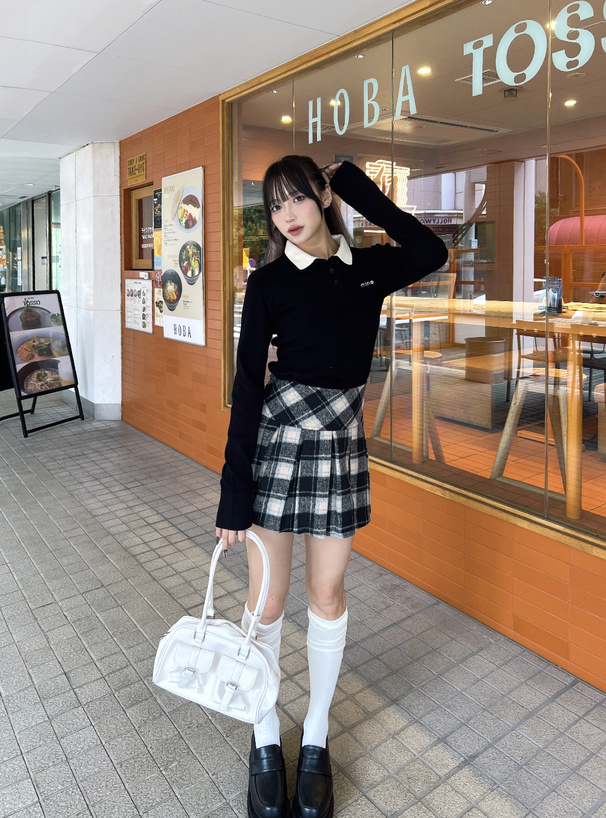 ショートパンツやチェックスカートに合わせれば、トレンドライクな着こなしが完成する。